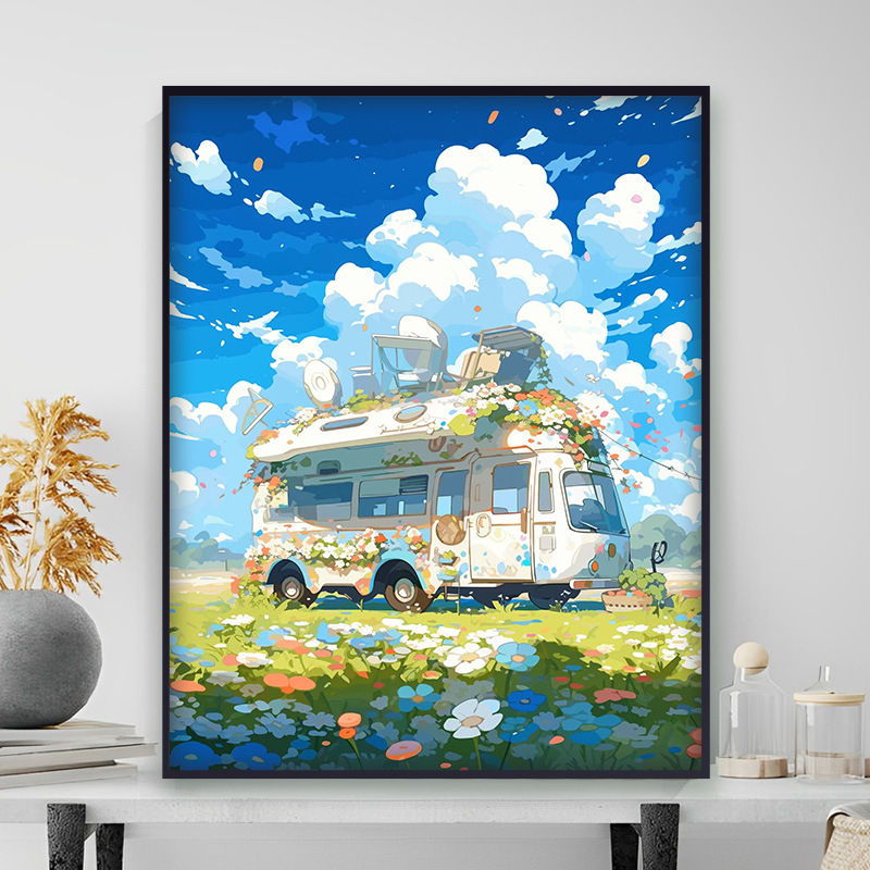 Sanlin 매장 뜨거운 diy 디지털 유화 도매 국경 3040 4050 만화 꽃 색칠 장식 그림스토어 가기
