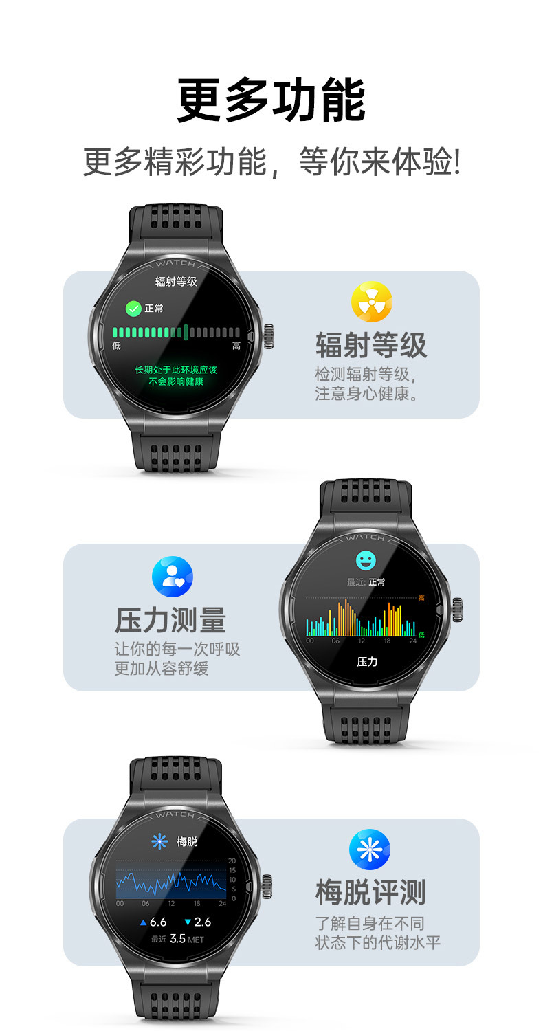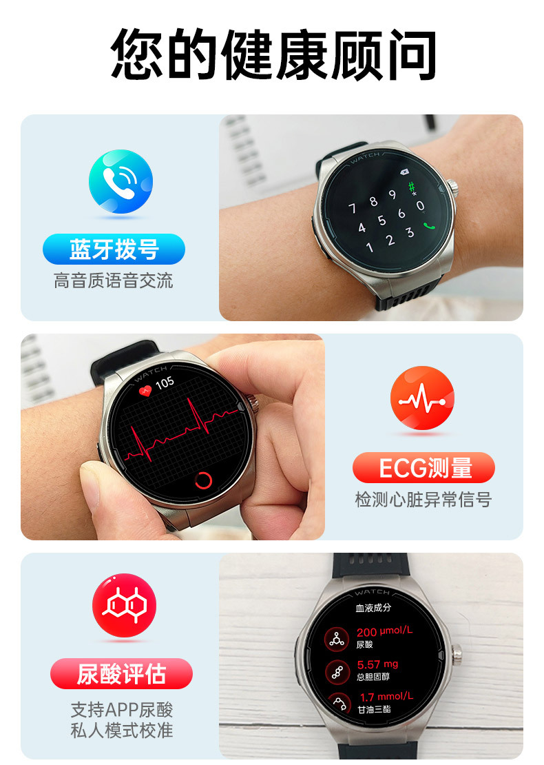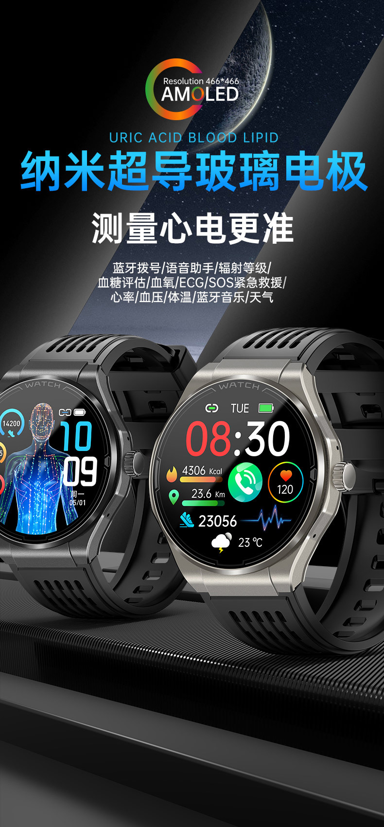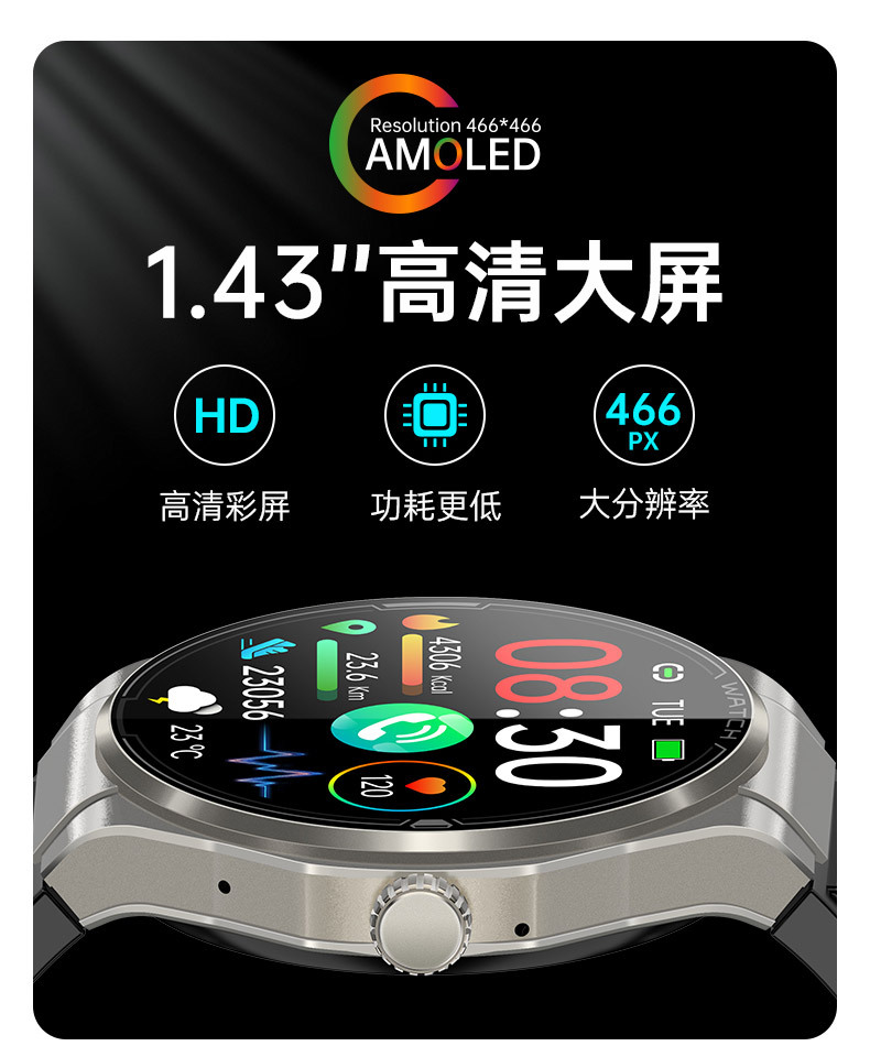 JA03 신형 AMOLED 화면 블루투스 통화 심전도 측정 심박수 혈중 산소 S0S 구조 호출 혈압 스마트워치