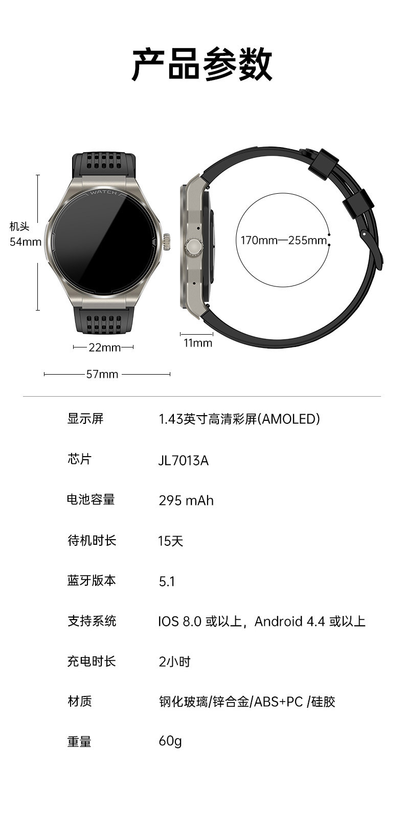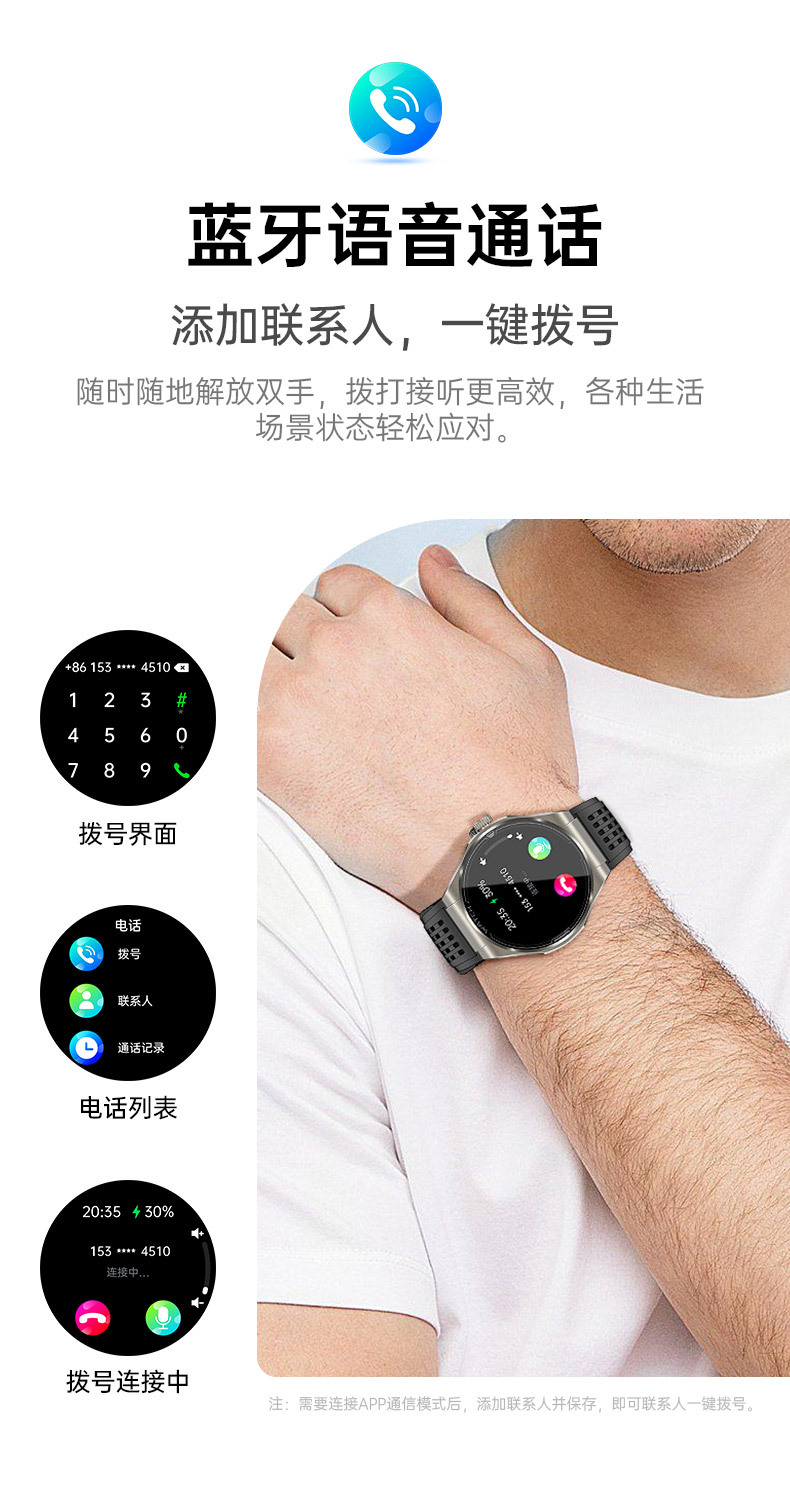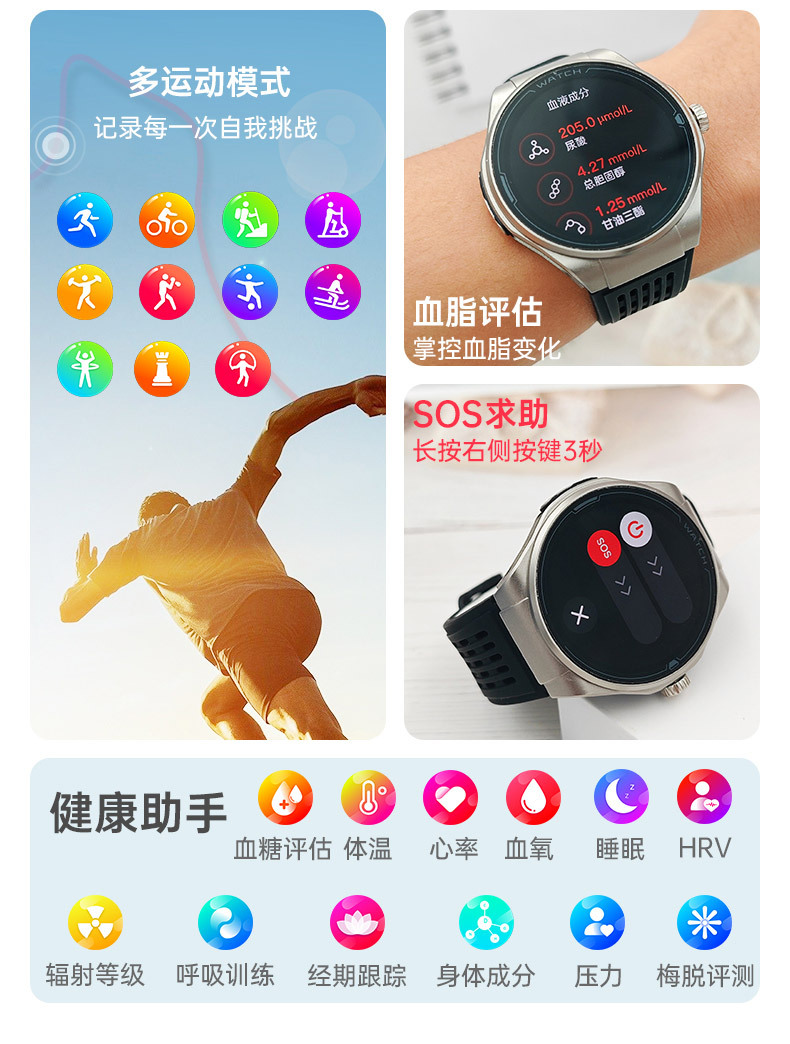 JA03 신형 AMOLED 화면 블루투스 통화 심전도 측정 심박수 혈중 산소 S0S 구조 호출 혈압 스마트워치