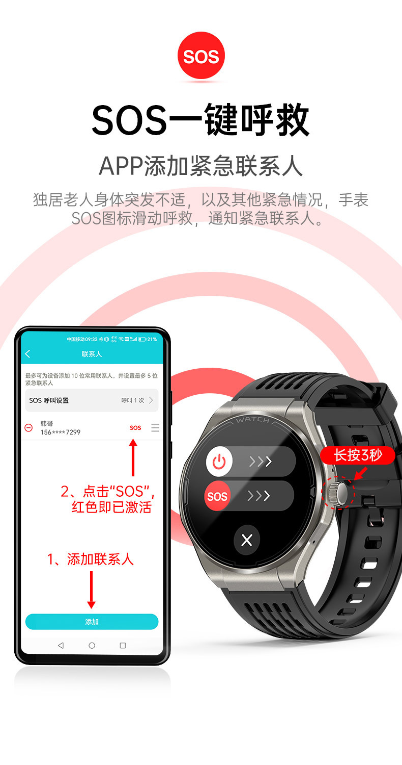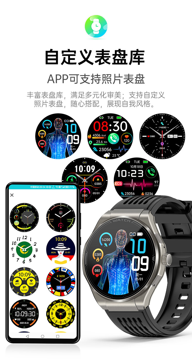 JA03 신형 AMOLED 화면 블루투스 통화 심전도 측정 심박수 혈중 산소 S0S 구조 호출 혈압 스마트워치스토어 가기