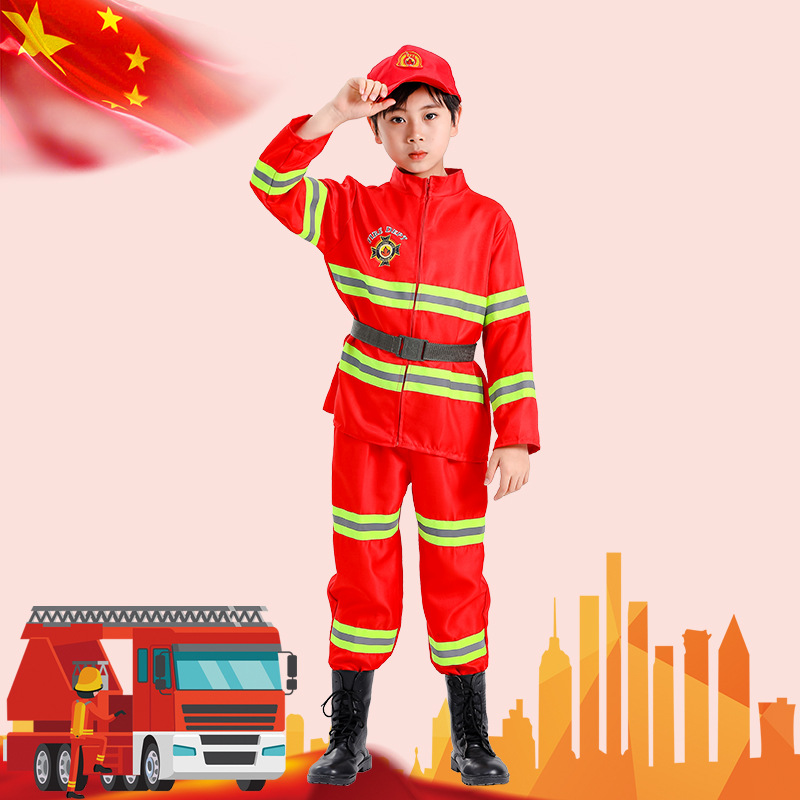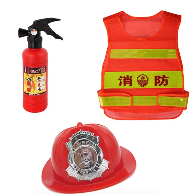 어린이 소방관 의상 장난감 샘 세트 장비 유치원 역할 놀이 물총 소화기 조끼 모자