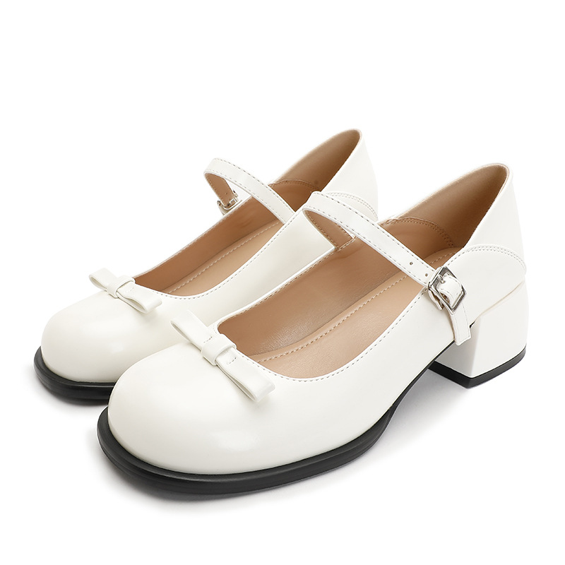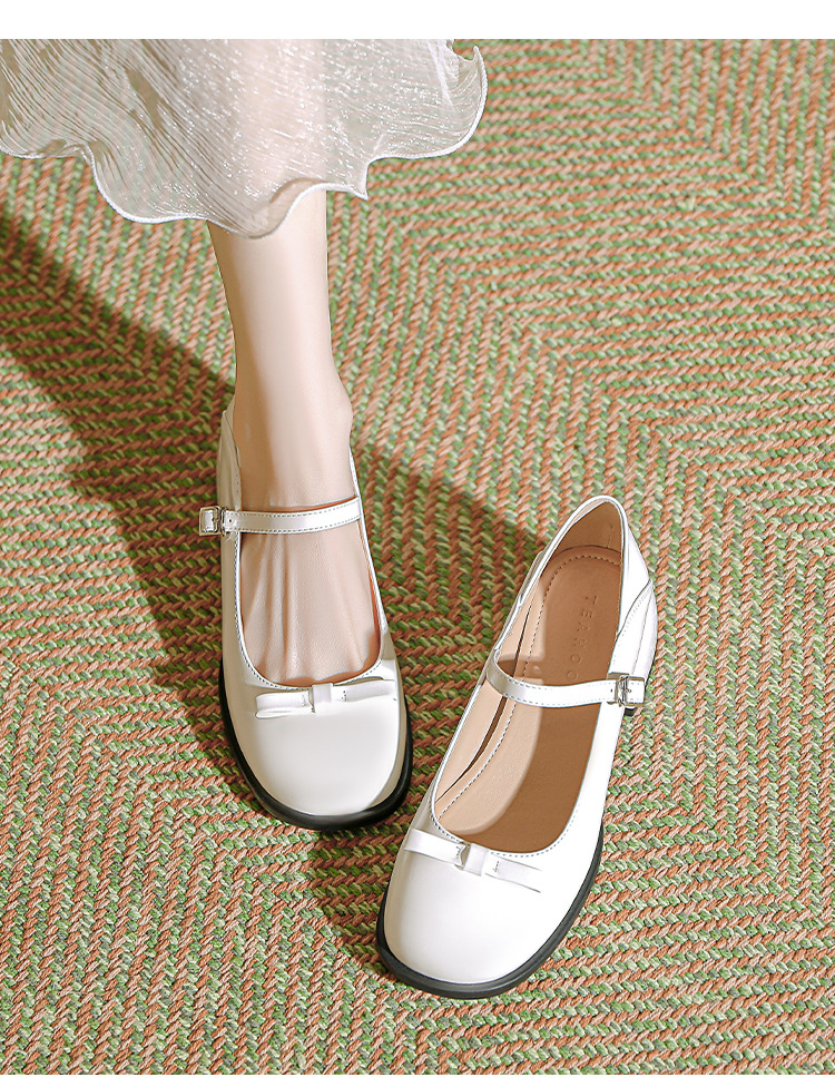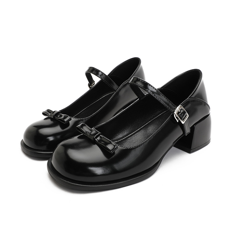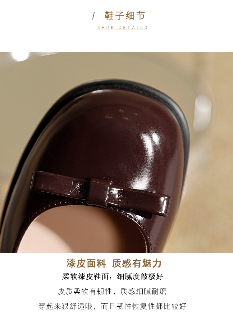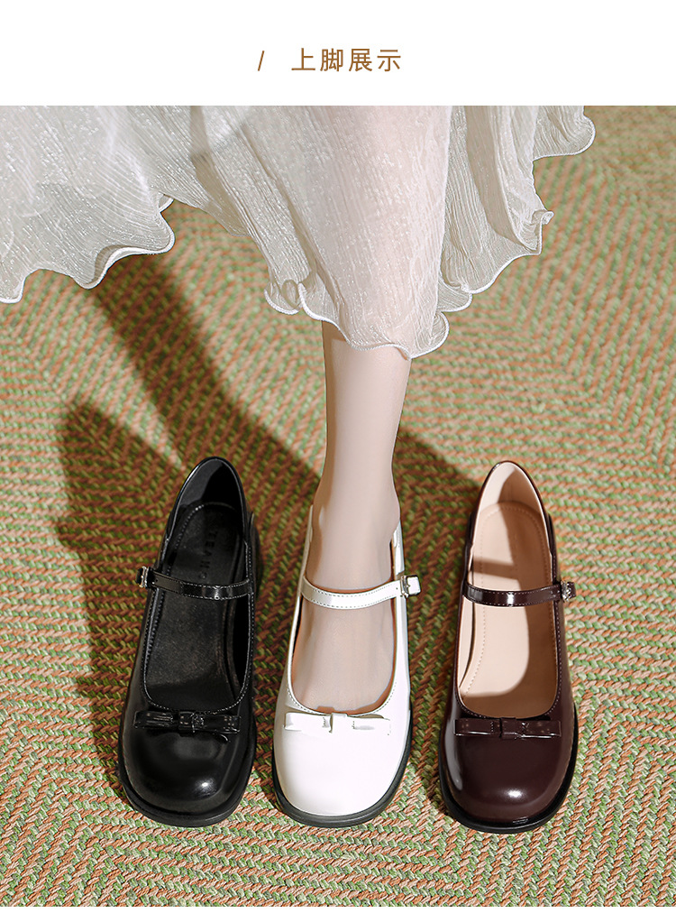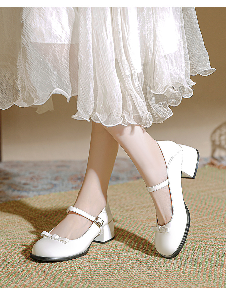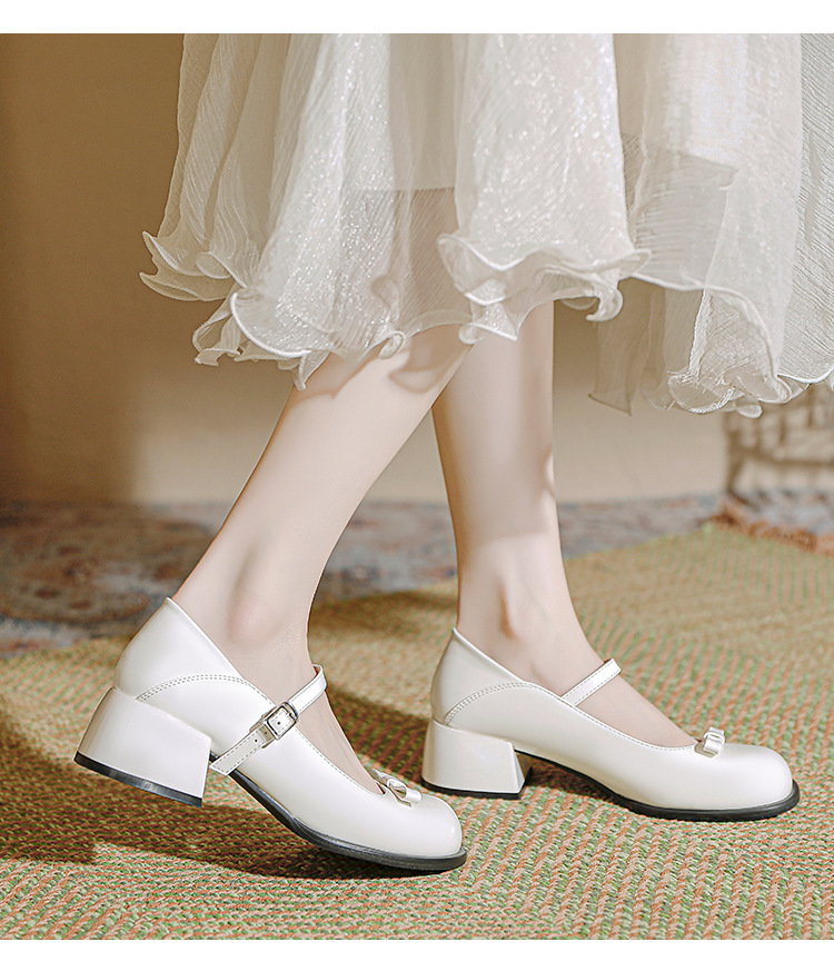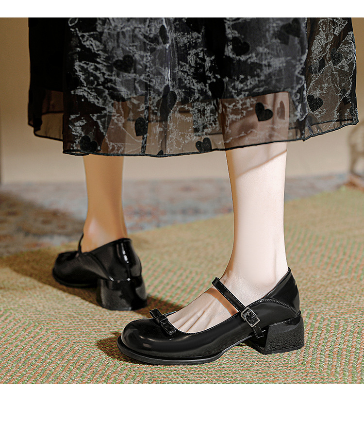 봄 2024 새로운 활 작은 단일 레이어 신발 여성용 청키 발 뒤꿈치 둥근 발가락 프랑스 얕은 입 Mary Jane 작은 가죽 신발 여성 신발