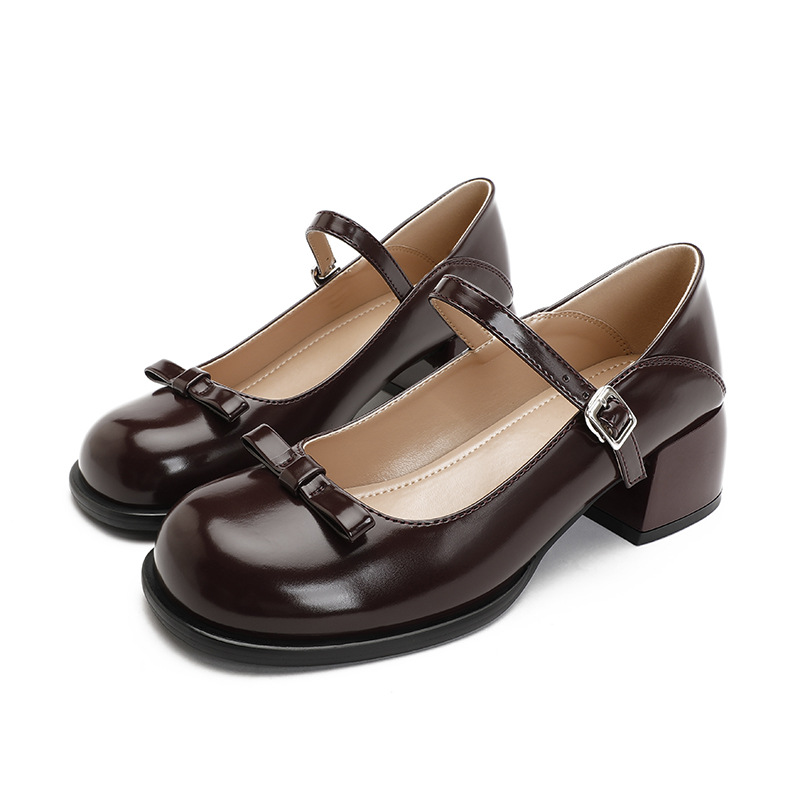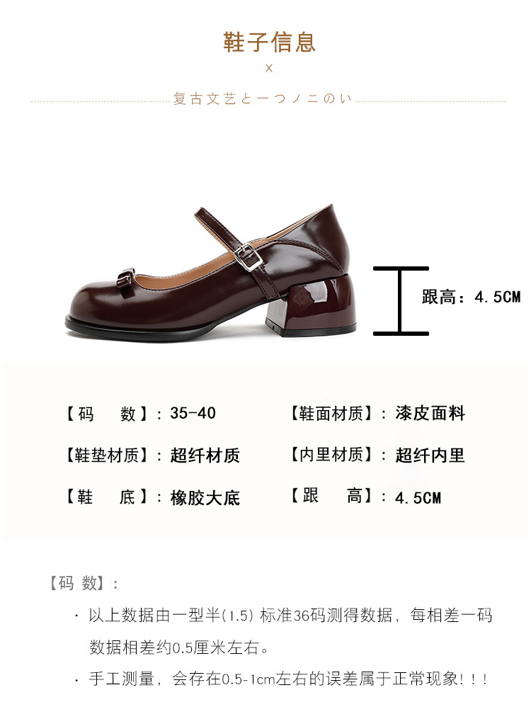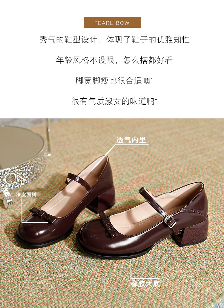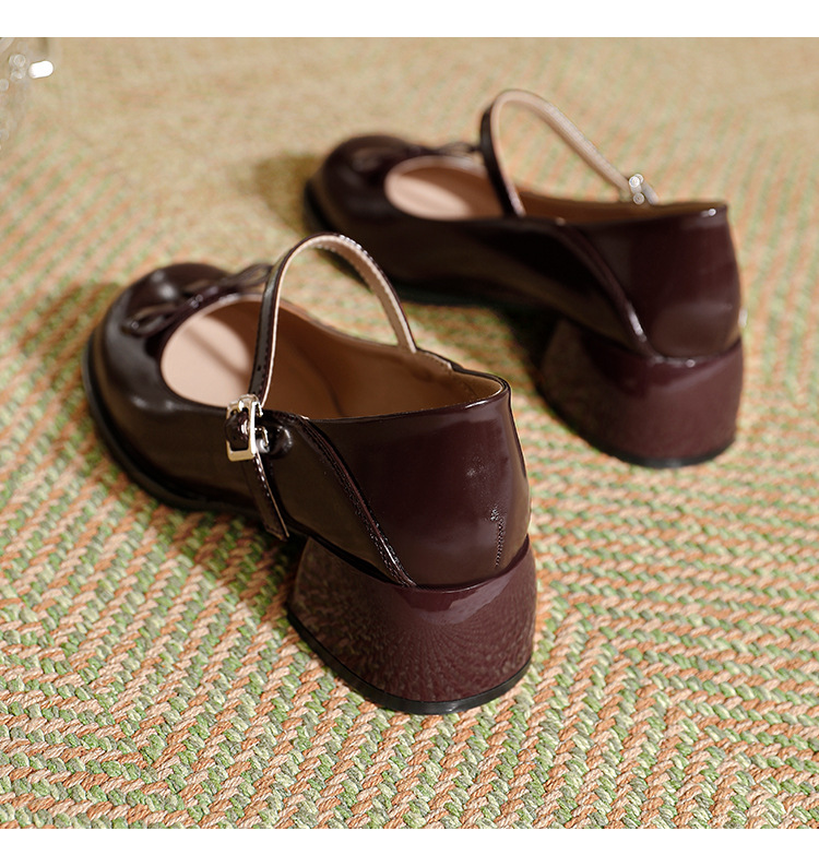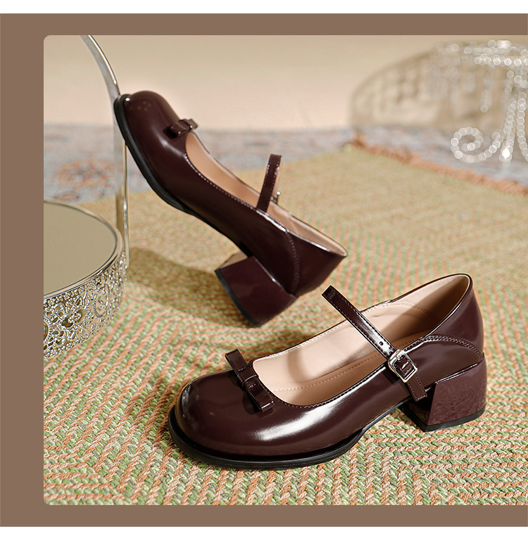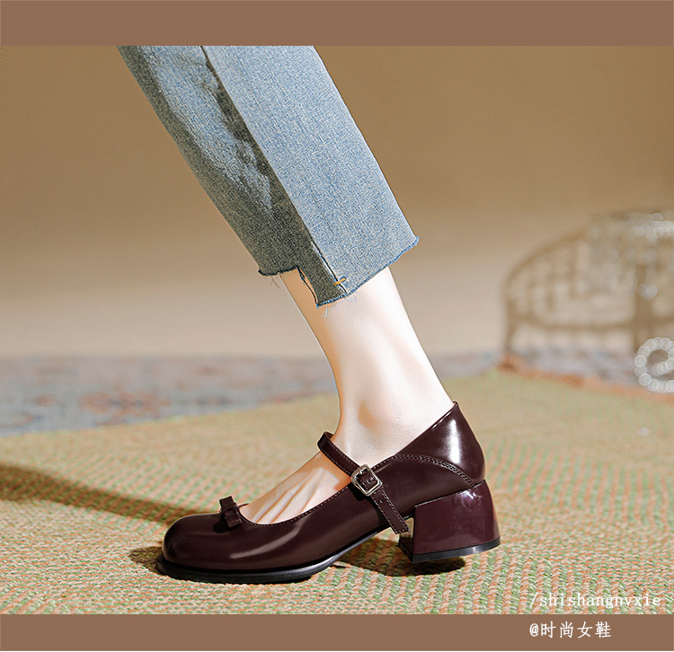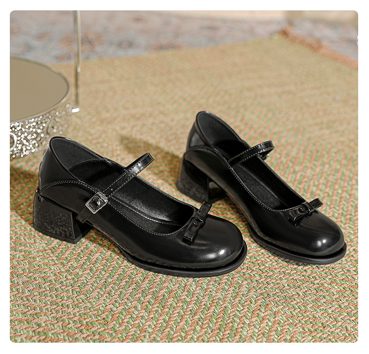 봄 2024 새로운 활 작은 단일 레이어 신발 여성용 청키 발 뒤꿈치 둥근 발가락 프랑스 얕은 입 Mary Jane 작은 가죽 신발 여성 신발스토어 가기