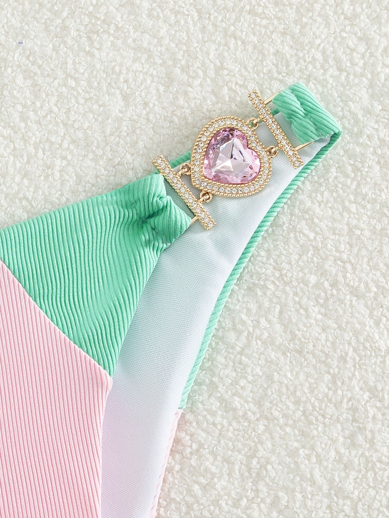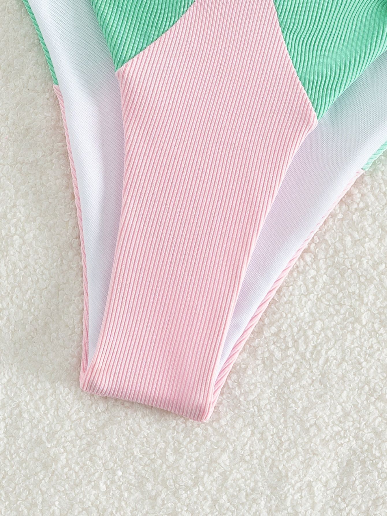 2024 새로운 유럽과 미국의 대외 무역 AliExpress 컬러 매칭 레이스 업 하이 허리 비키니 섹시한 스플릿 수영복 수영복스토어 가기