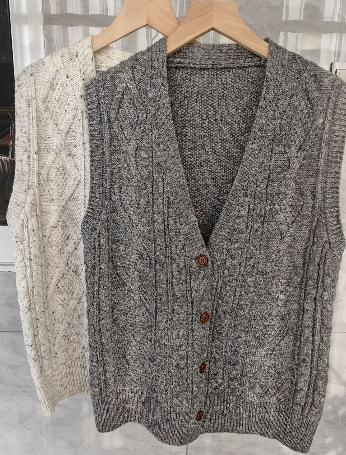가을과 겨울 레트로 잡색 트위스트 조끼 니트 조끼 여성의 새로운 느슨한 민소매 스웨터 카디건 패션스토어 가기