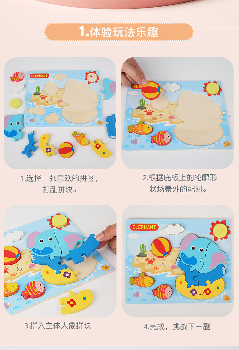 조기 교육 지적 두뇌 이동 아기 1-2-3 세 나무 입체 아기 소년과 소녀 어린이 퍼즐 장난감스토어 가기