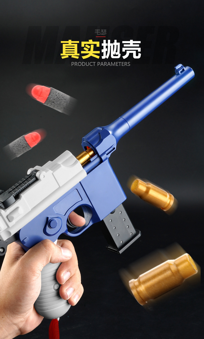 Kehuang Long Mauser 권총 쉘 부드러운 총알 총 매뉴얼이 장착 된 소년은 치킨 시뮬레이션 어린이 장난감 총 도매를 먹습니다.스토어 가기