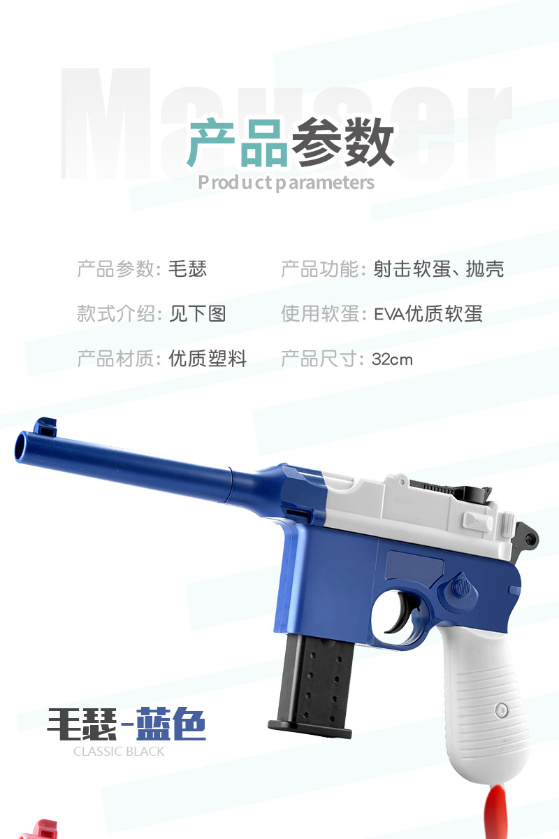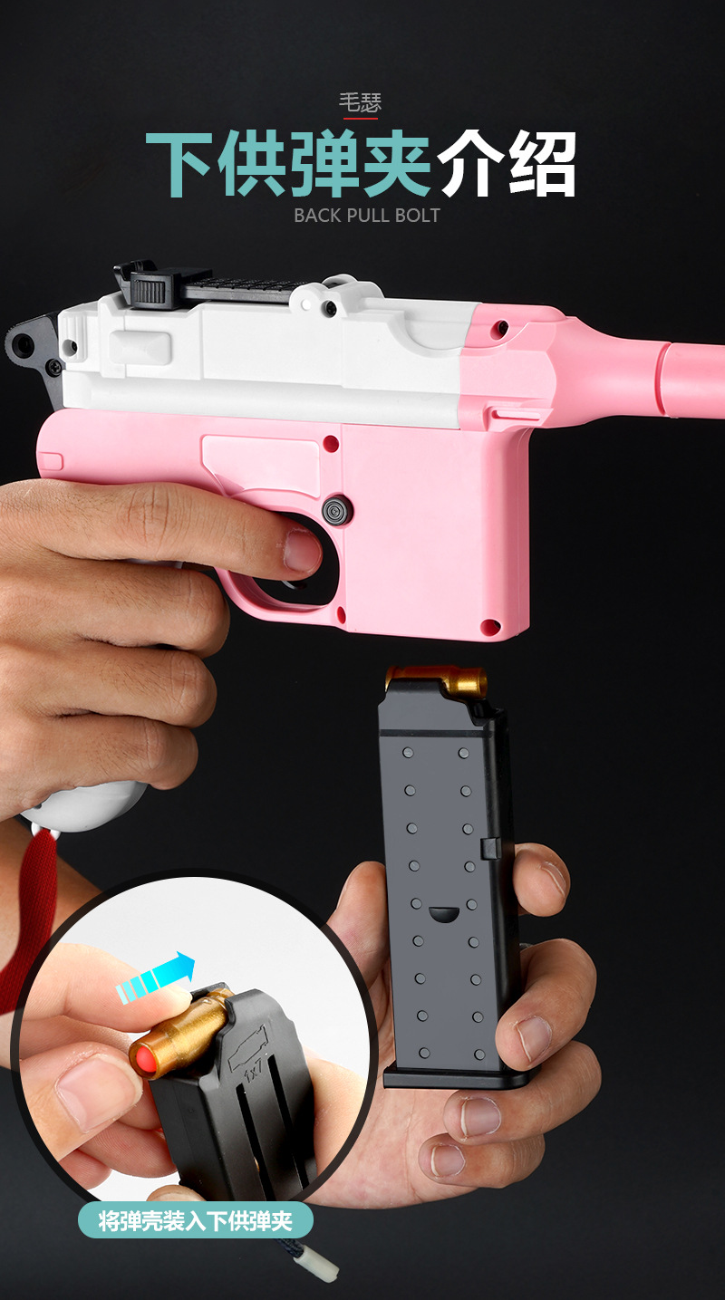 Kehuang Long Mauser 권총 쉘 부드러운 총알 총 매뉴얼이 장착 된 소년은 치킨 시뮬레이션 어린이 장난감 총 도매를 먹습니다.