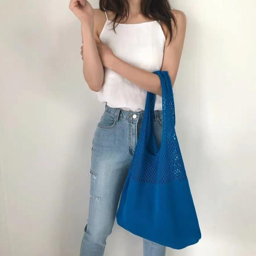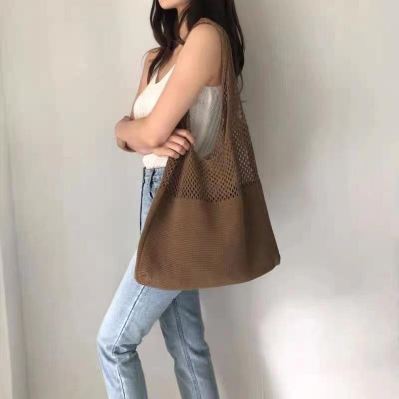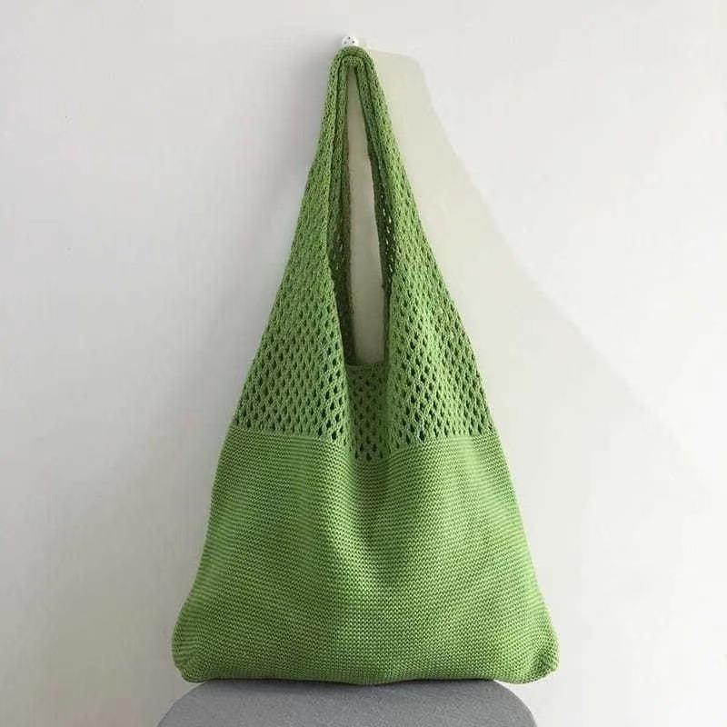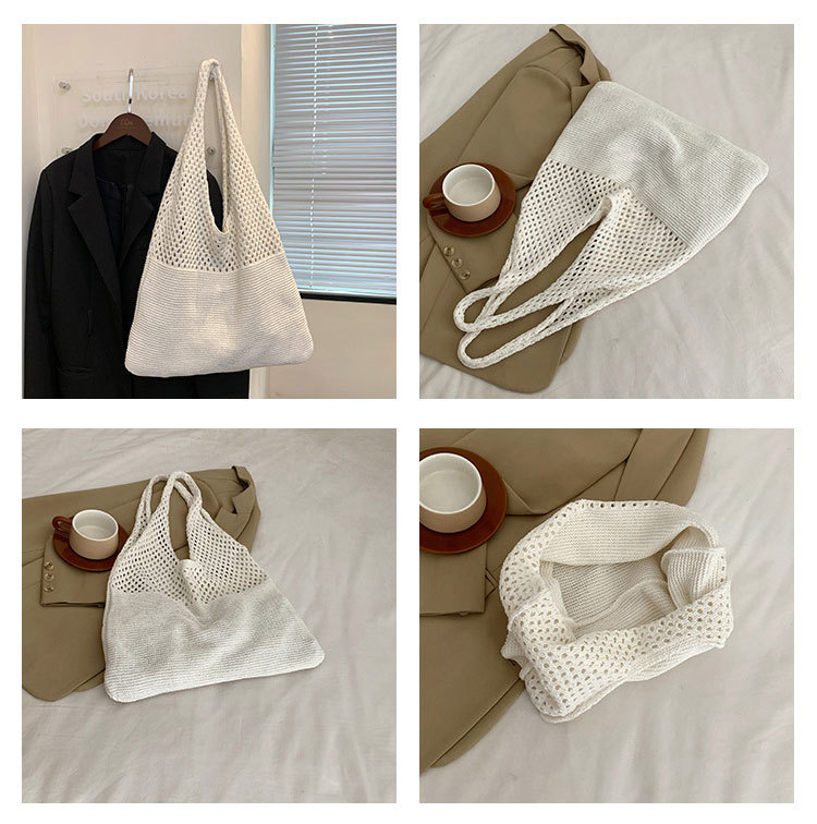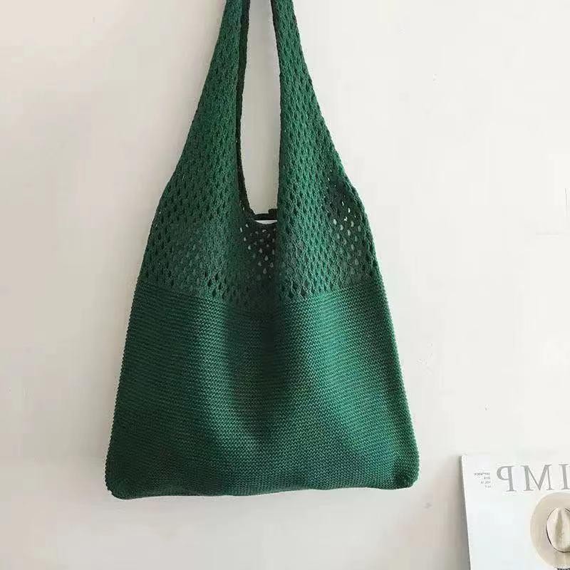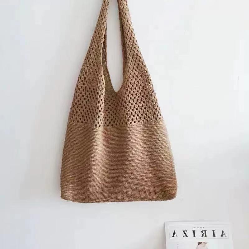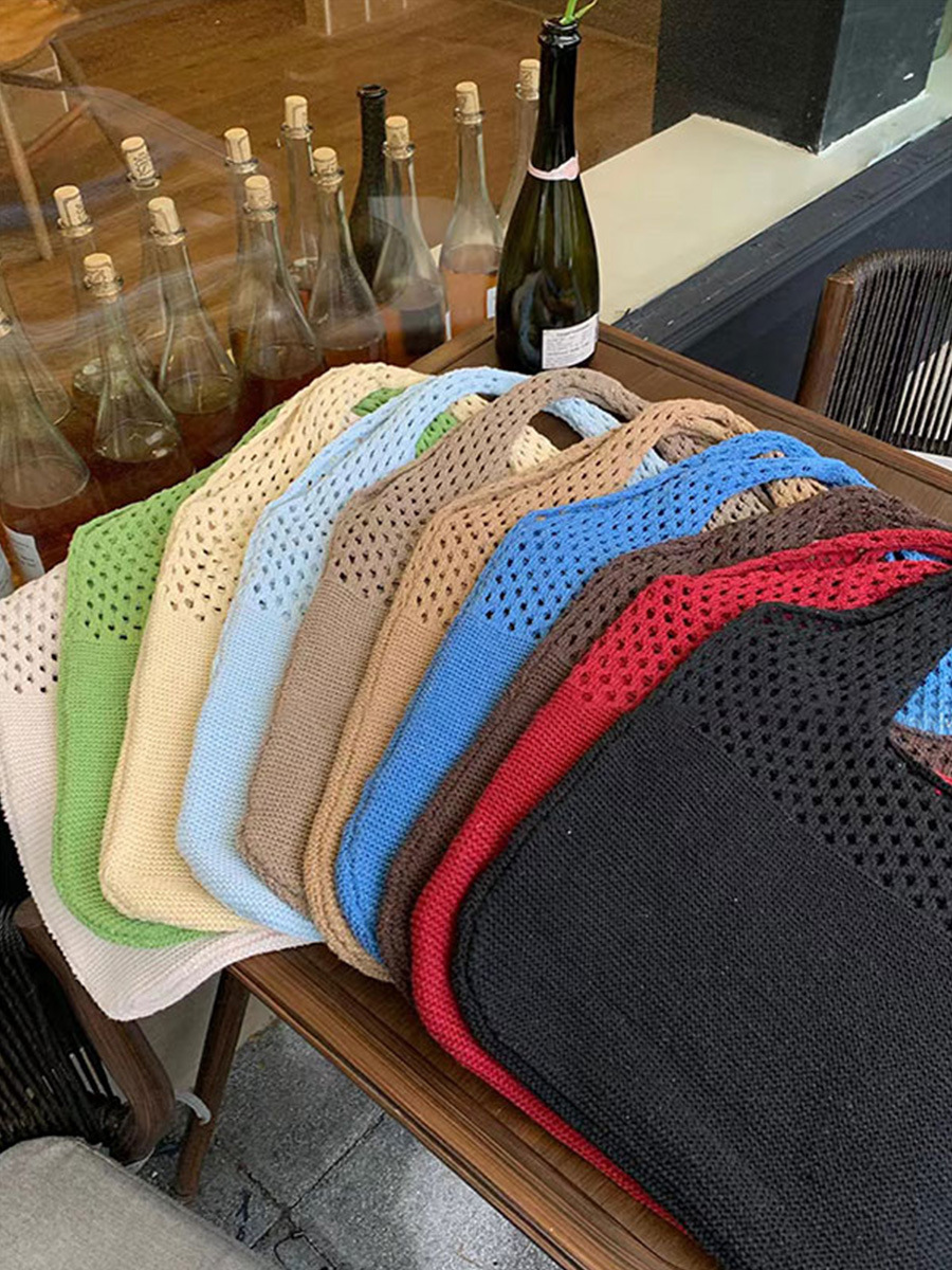 2024 가방 여성 중공 니트 가방 도파민 짠 가방 세련되고 다재다능한 어깨 가방 손 가방 크리스마스 크로스 보더스토어 가기