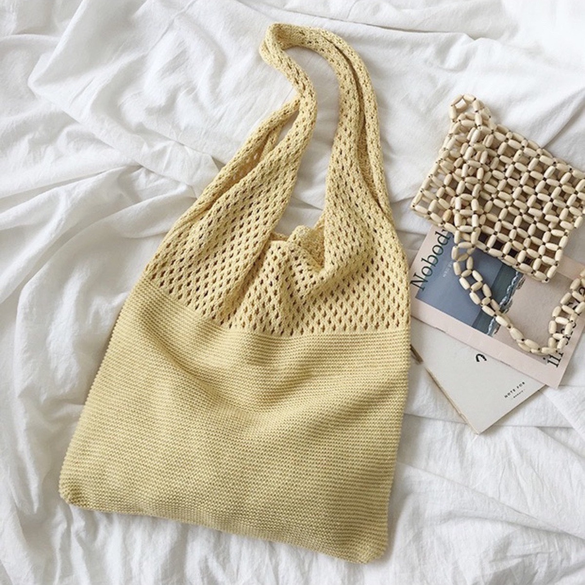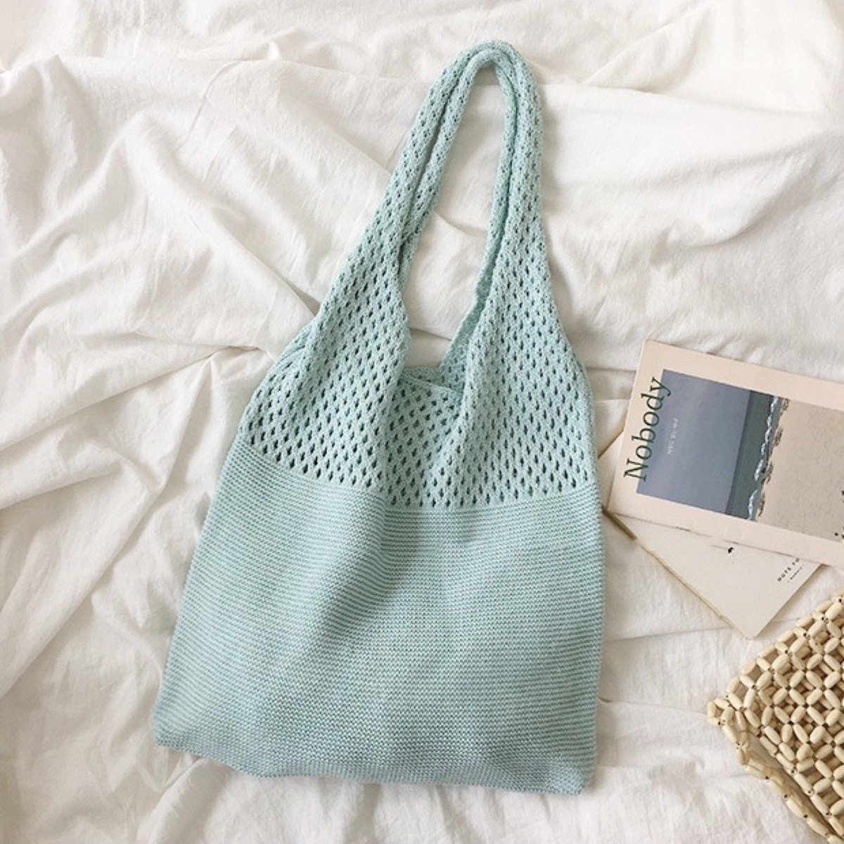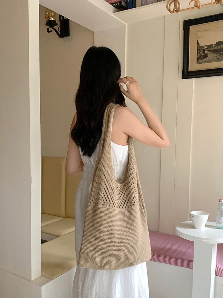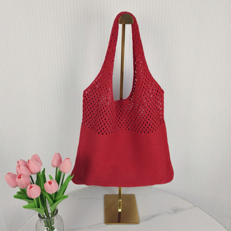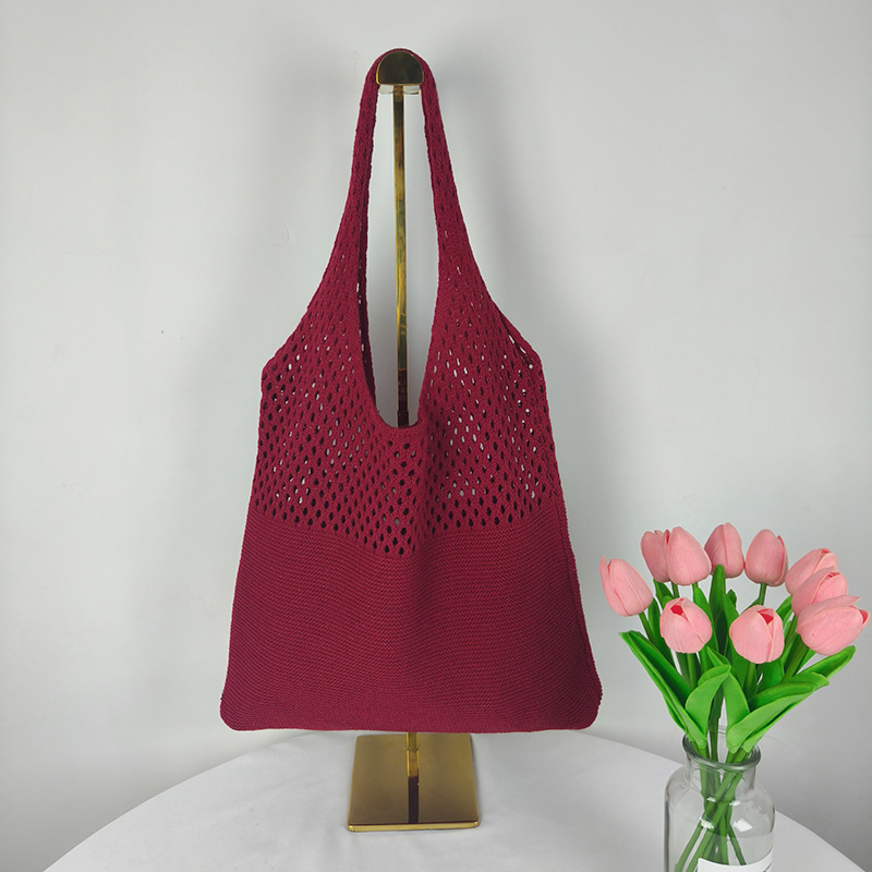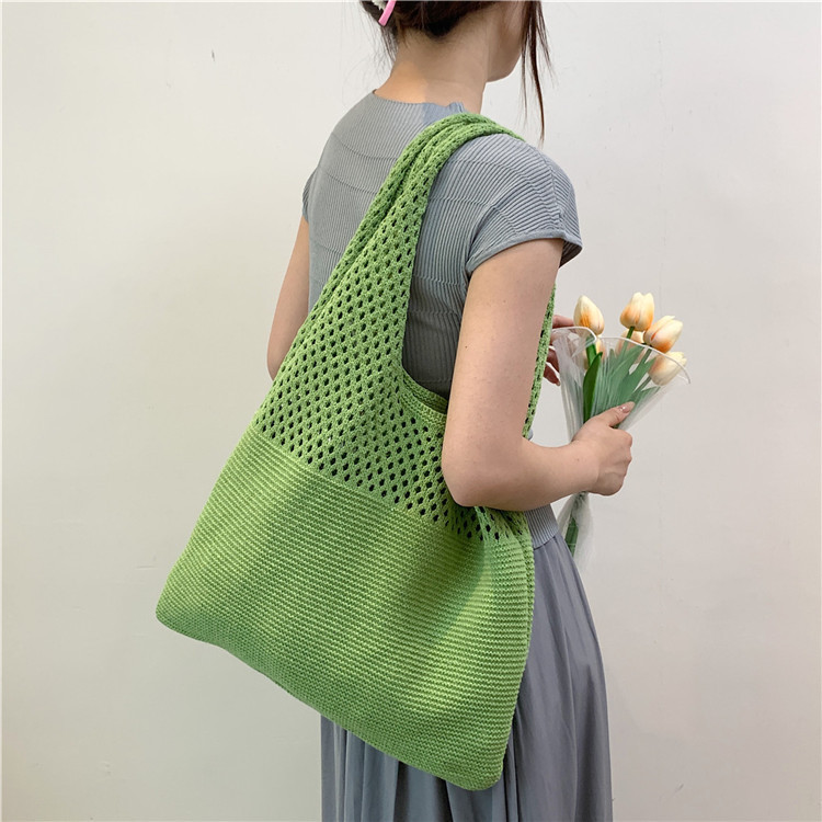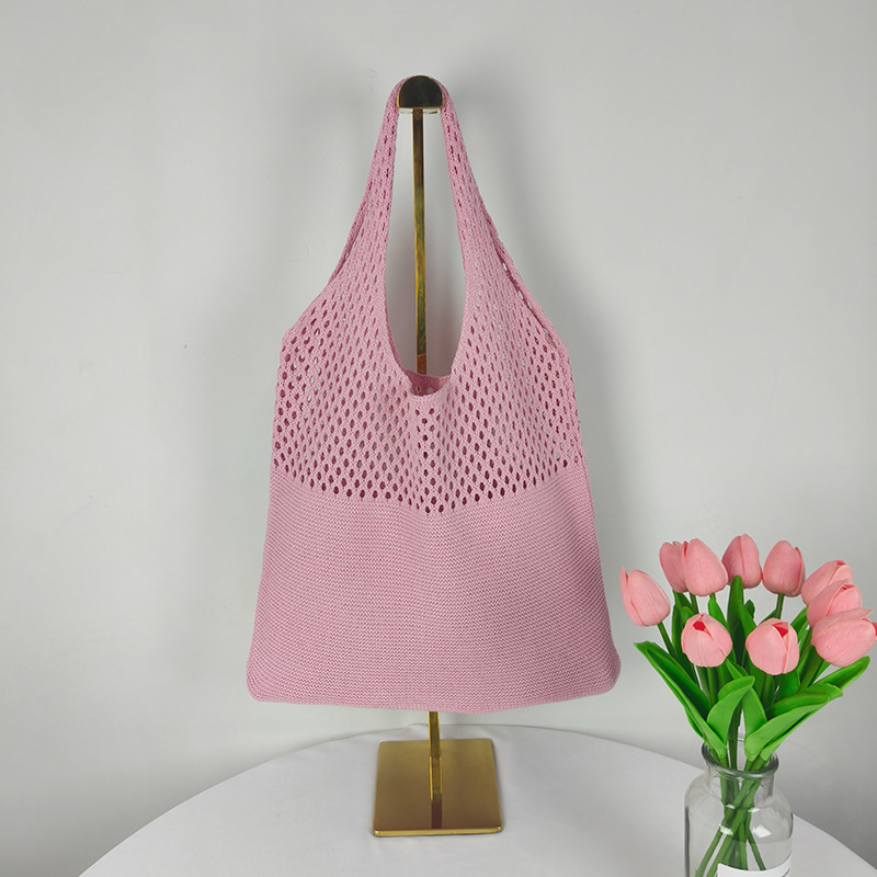 2024 가방 여성 중공 니트 가방 도파민 짠 가방 세련되고 다재다능한 어깨 가방 손 가방 크리스마스 크로스 보더
