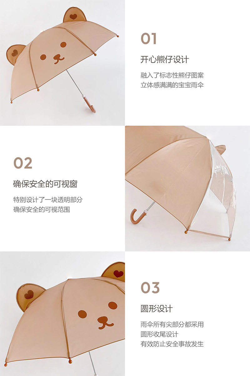 한국 스타일 귀여운 곰 어린이 방풍 우산 아기 귀여운 거리 촬영 투명 우산