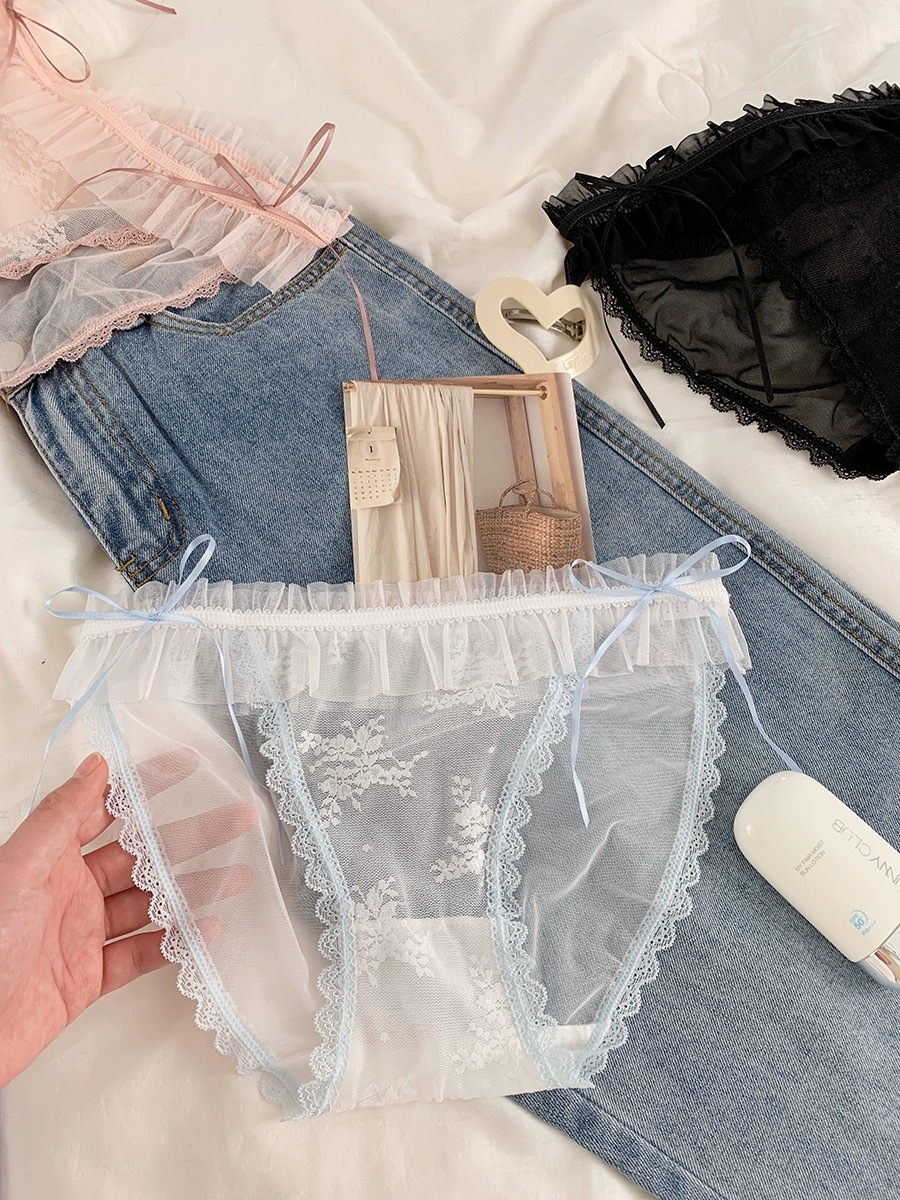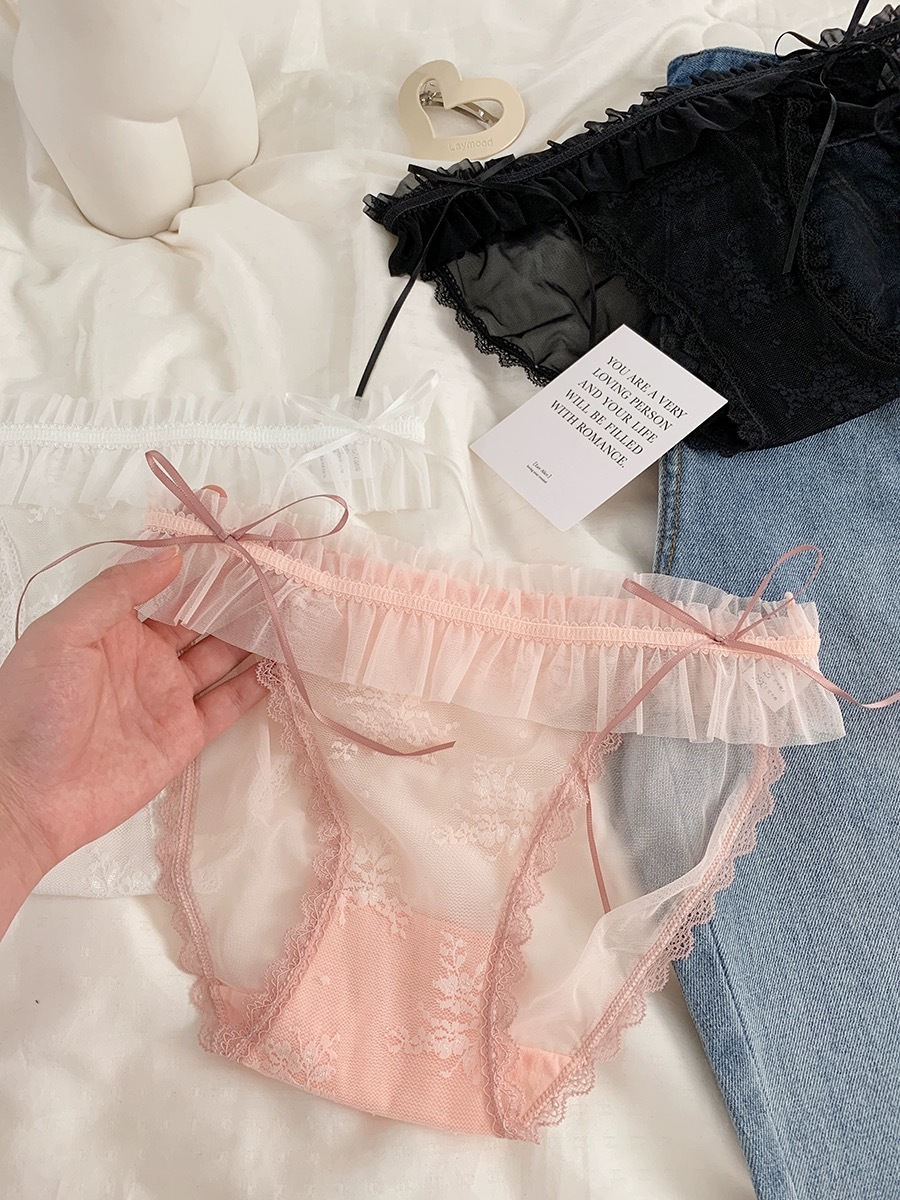 소녀의 순수한 욕망 스타일 달콤한 속옷 새로운 단색 나비 레이스 가장자리 통기성 편안한 낮은 허리 브리프스토어 가기