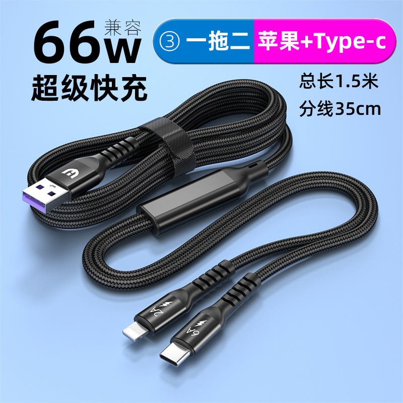 名称:一拖二充电线快充;中部带智能芯片,实现快充时也支持同时充电