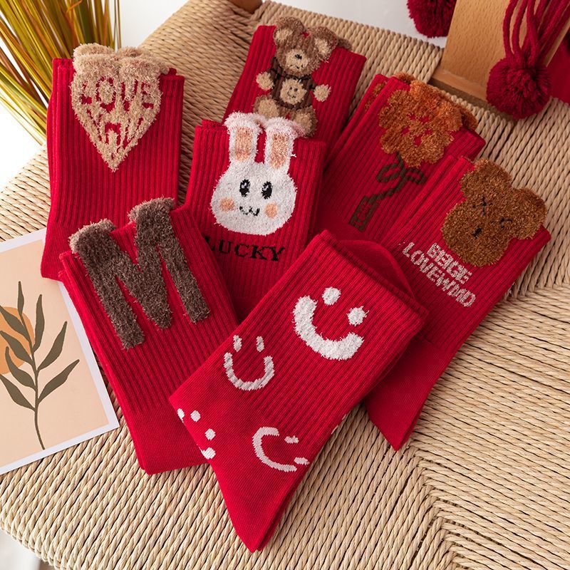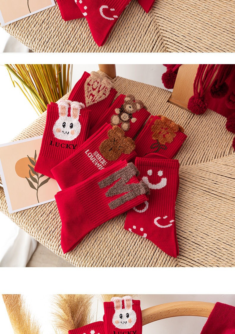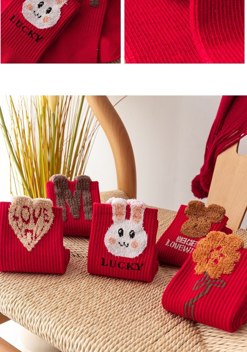 가을과 겨울 푹신한 토끼 커플의 사랑 스타킹 새해 올 매치 웨딩