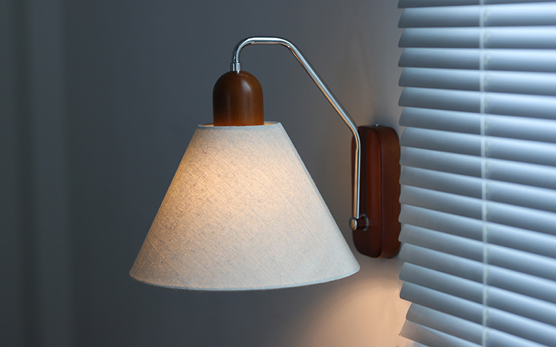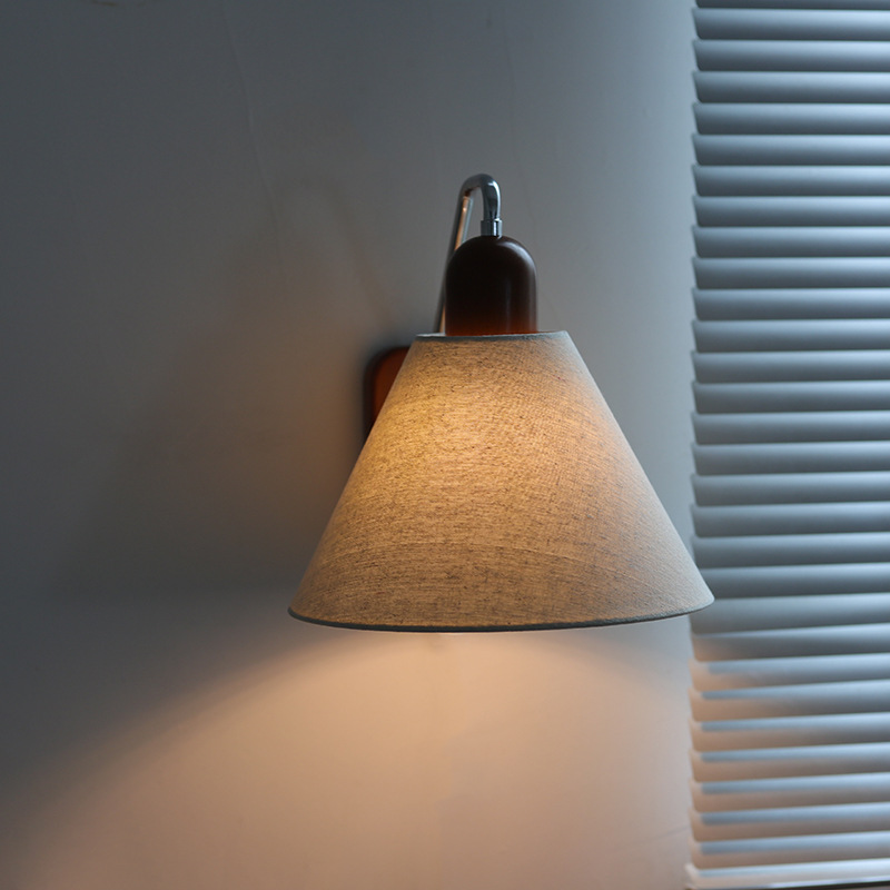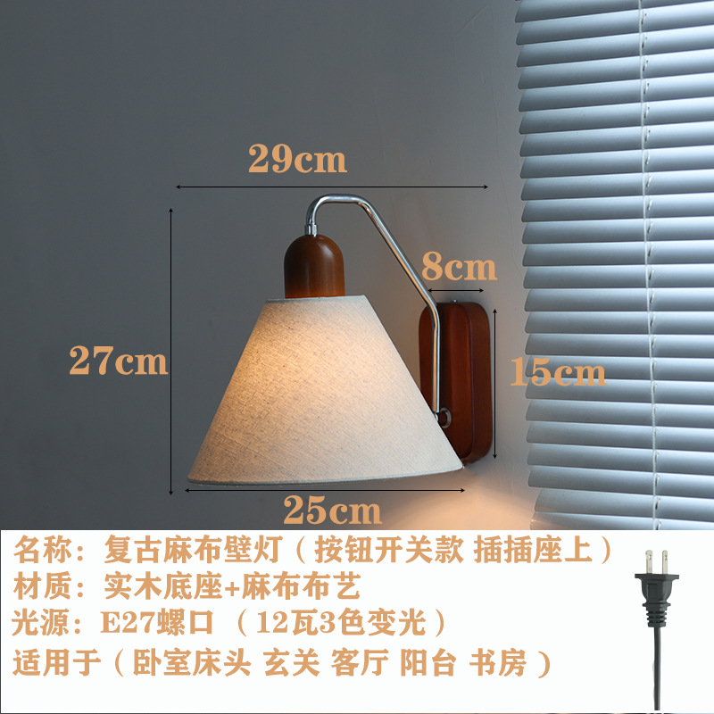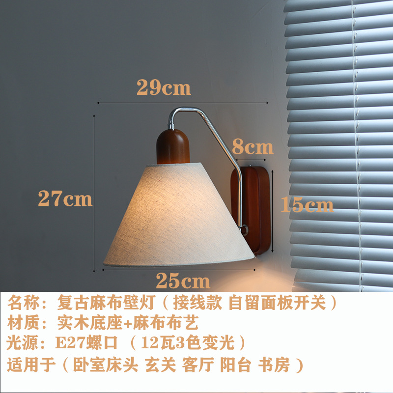 국경 중간 고대 복고풍 린넨 벽 램프 침실 침대 옆 연구 복도 발코니 램프 분위기 램프 단단한 나무 일본 통로