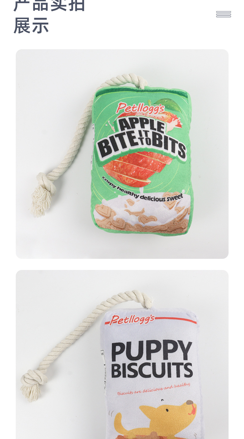 새로운 애완 동물 코튼 로프 장난감 개 보컬 식품 비스킷 Molar 치아 청소 물린 방지 보링 장난감