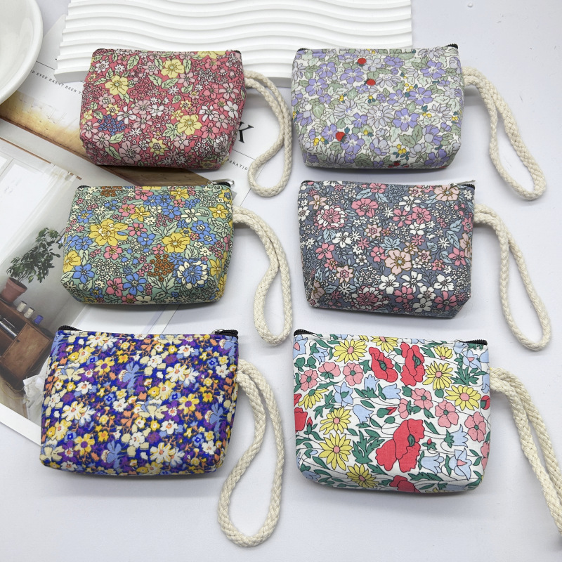 새로운 꽃 목회 동전 지갑 동전 가방 손목 가방 직물 작은 지갑 여성용 클러치 키 가방스토어 가기