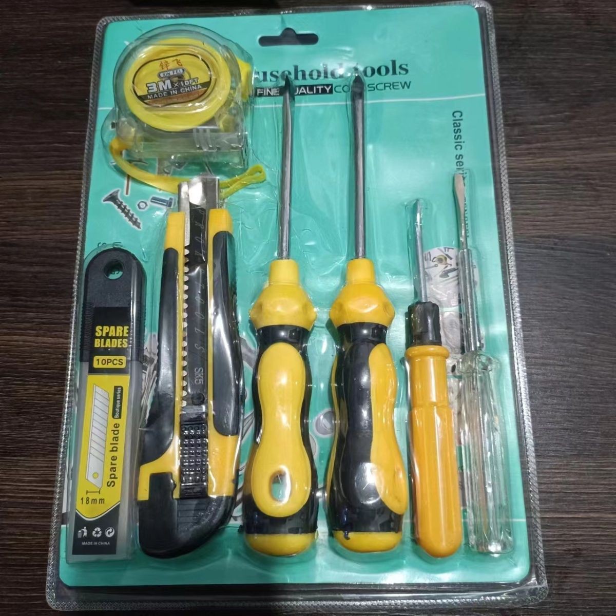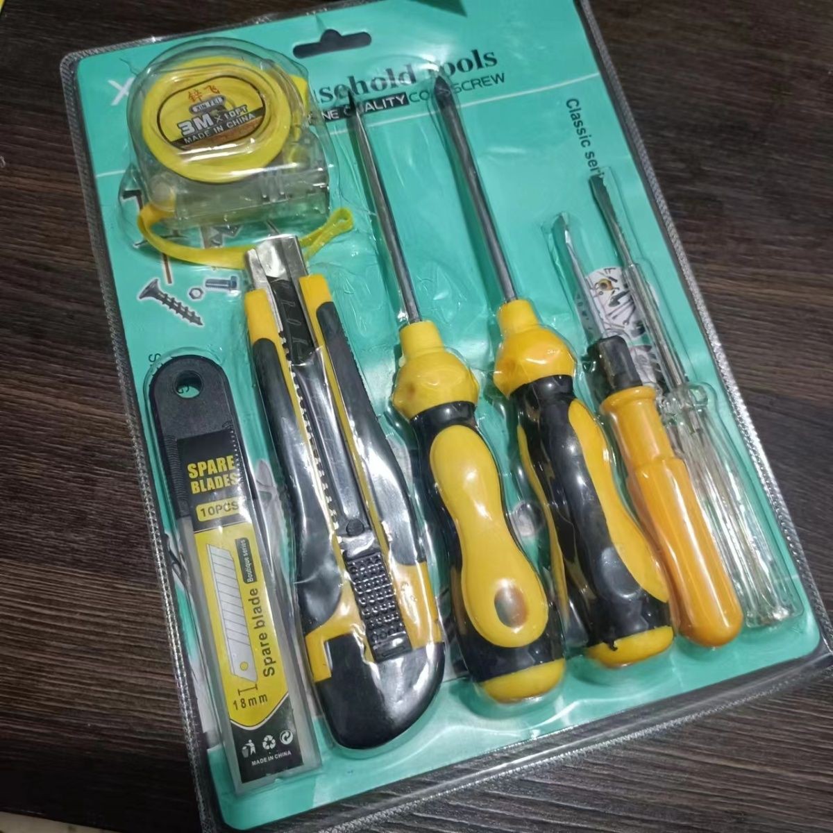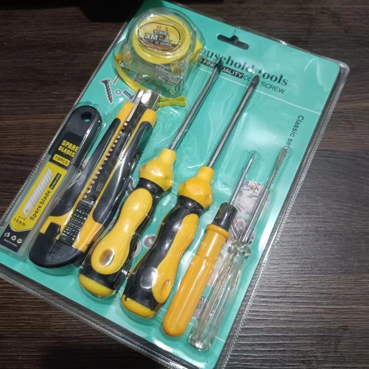 테이프 측정 값 7 피스 세트 크로스 대형 스크루 드라이버 더블 헤드 드라이버 아트 나이프 3 M 도구 조합 세트스토어 가기