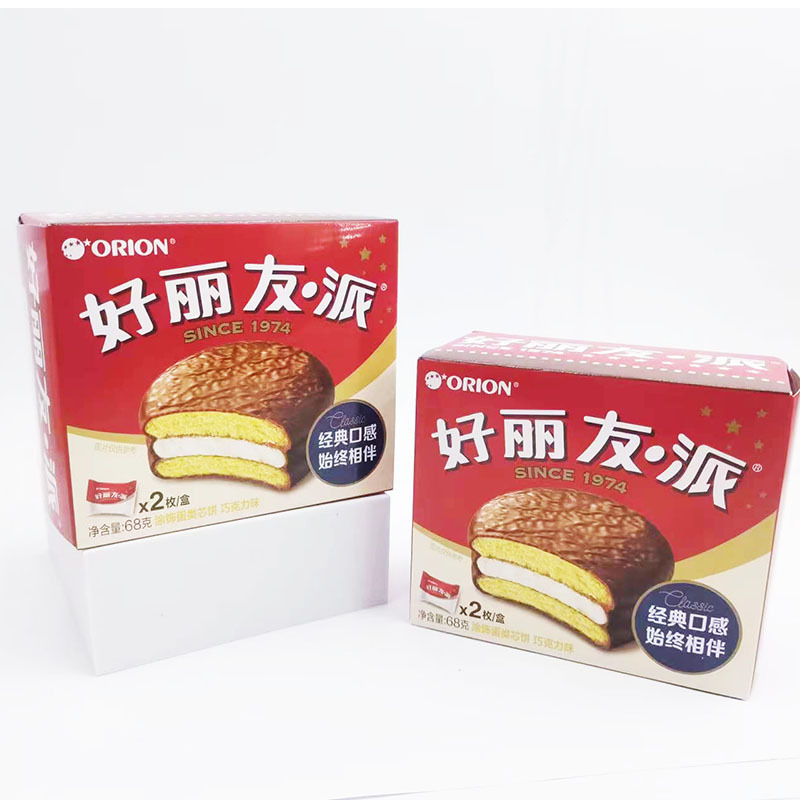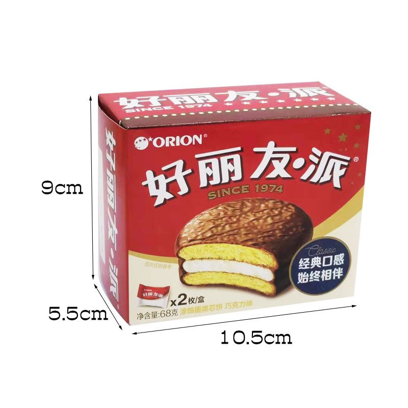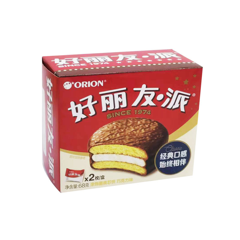 好丽友巧克力派蛋糕盒装68g2枚装 是伴手礼内搭很受欢迎的品牌盒装蛋糕即食伴手礼零食。