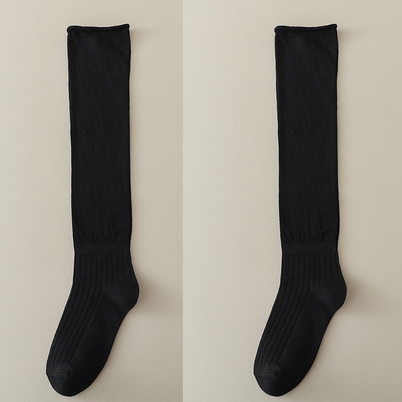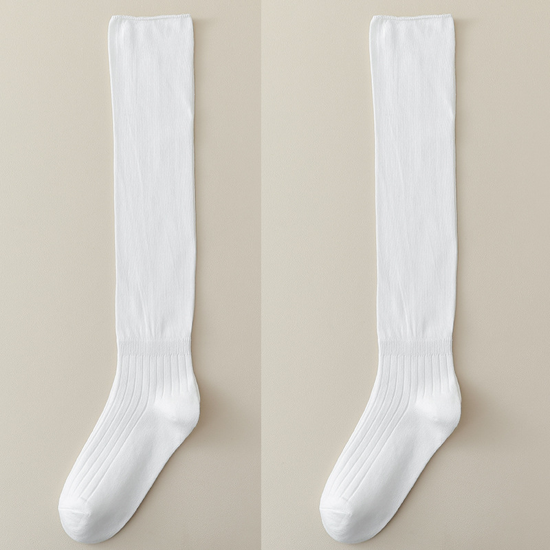 긴 튜브 주름진 접이식 양말 얇은 단색 순수한 달콤한 스티칭 무릎 높이 허벅지 양말