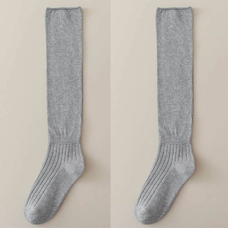 긴 튜브 주름진 접이식 양말 얇은 단색 순수한 달콤한 스티칭 무릎 높이 허벅지 양말스토어 가기