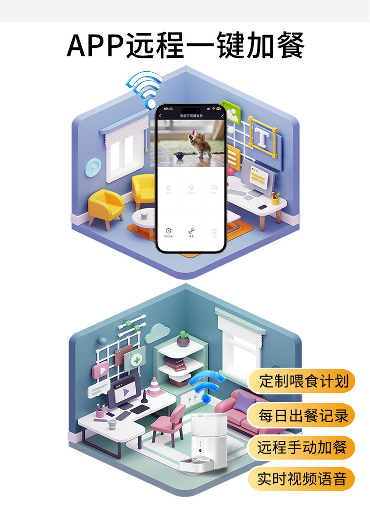 고양이 스마트 급식기 애완동물 자동 급식기 사료 자동 공급 타이머 설정 음성 영상 비디오 음성 상호작용