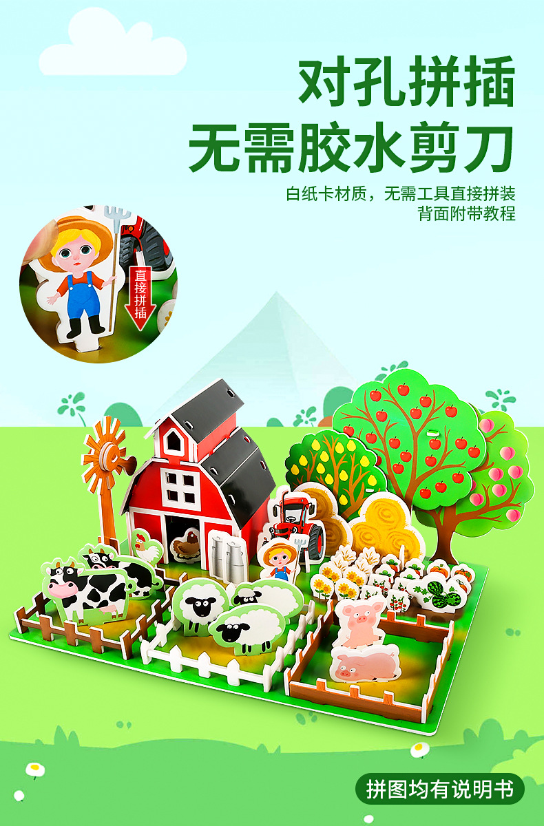 창조적 인 농장 3 차원 퍼즐 어린이 diy 3 차원 퍼즐 수제 장난감 부모-자식 상호 작용스토어 가기