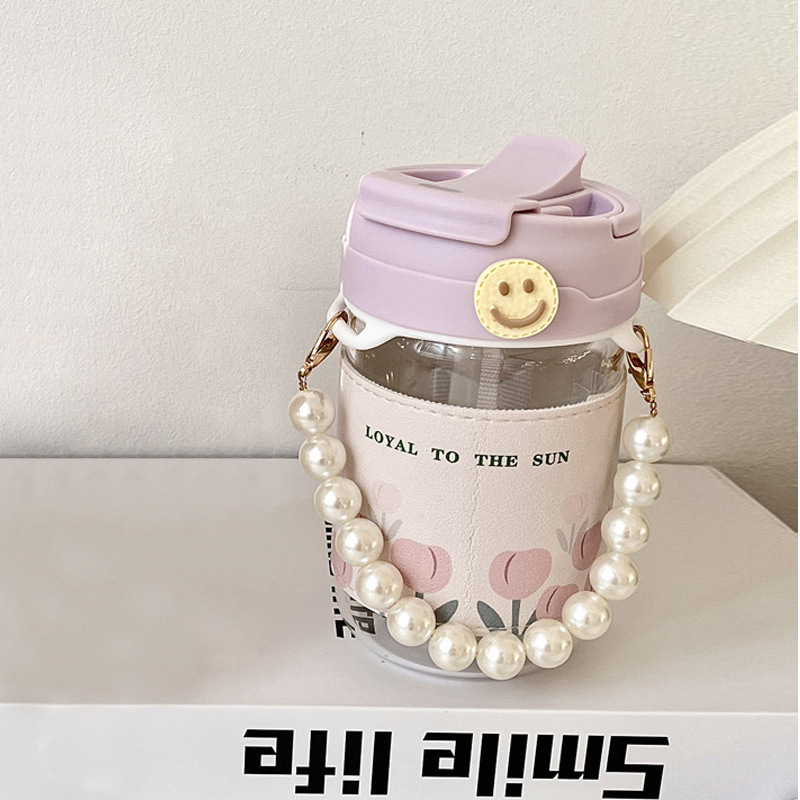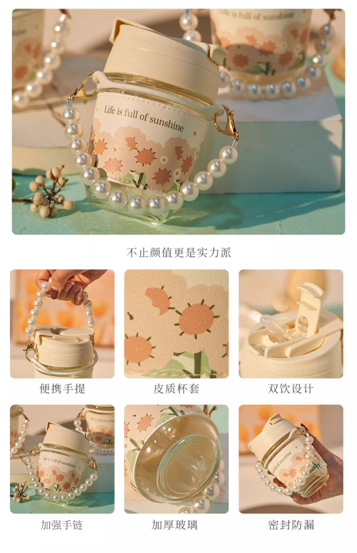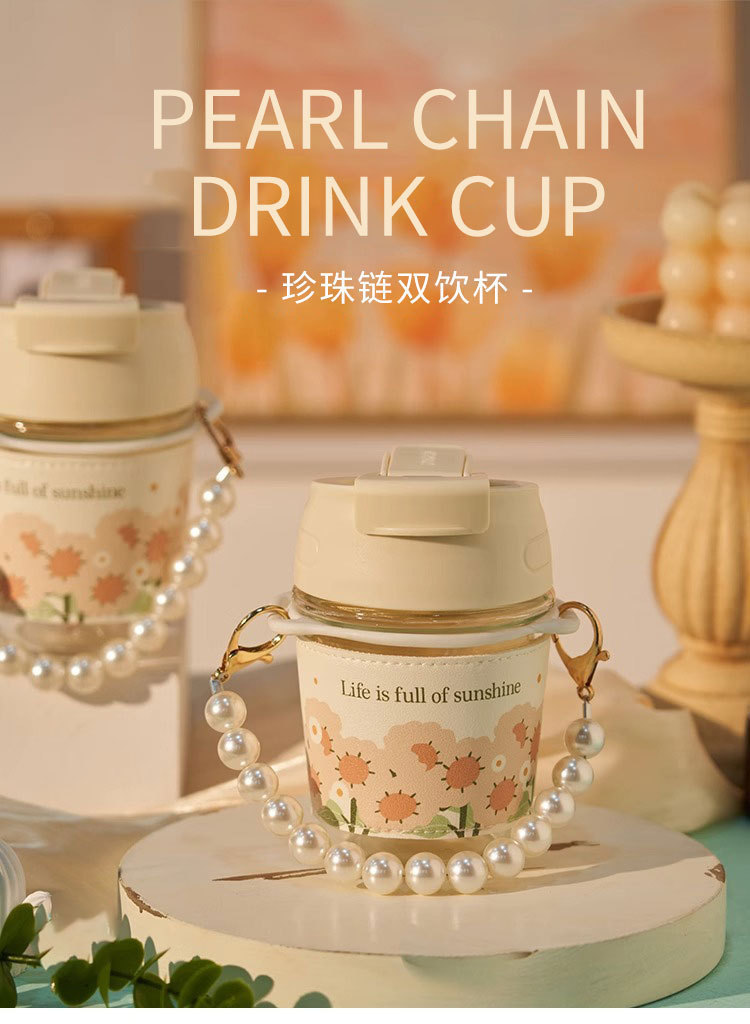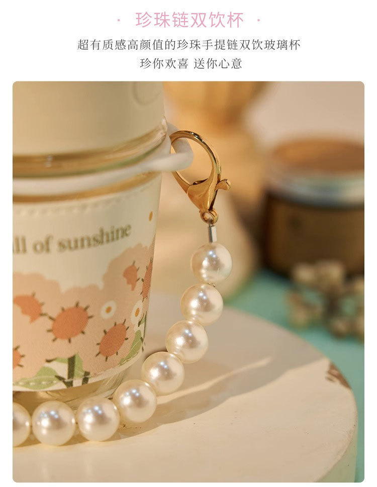 창조적 인 진주 팔찌 더블 마시는 컵 높은 모양의 튤립 티 컵 높은 온도 저항 유리스토어 가기