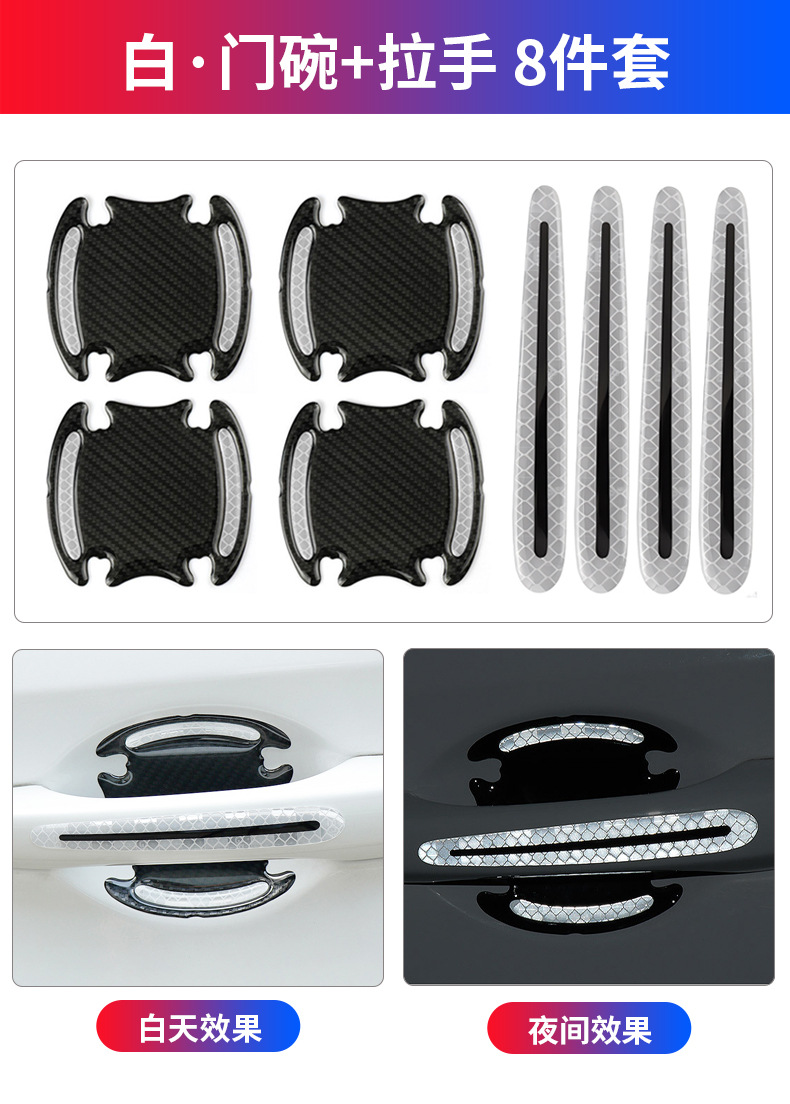 자동차 도어 핸들 충돌 방지 스트립 백미러 도어 핸들 야간 반사 자동차 스티커 도어 페인트 스크래치 보호 스티커