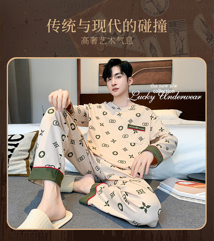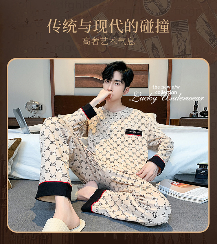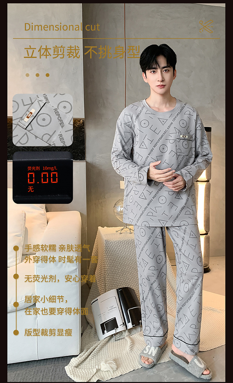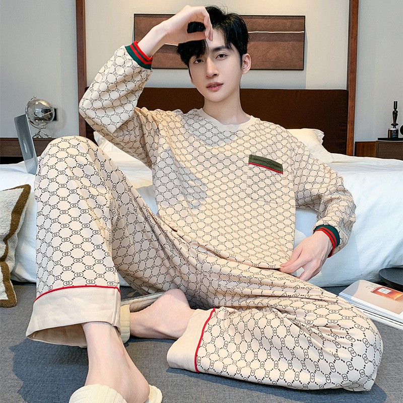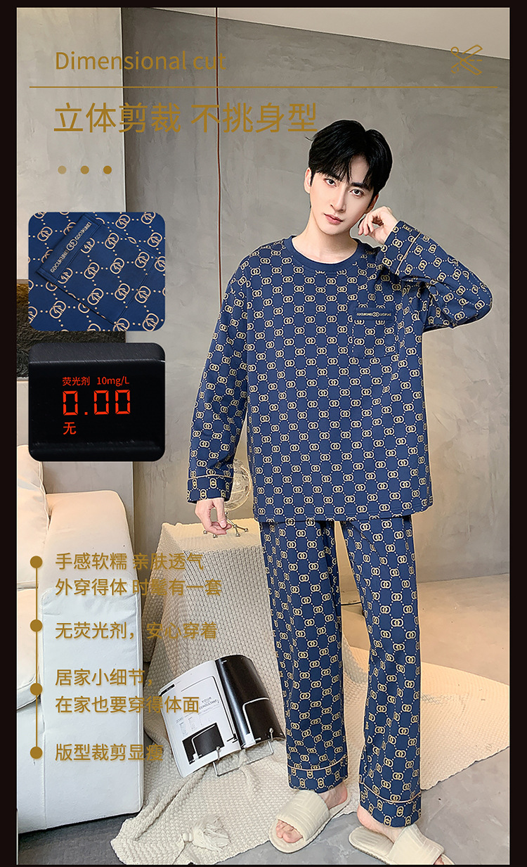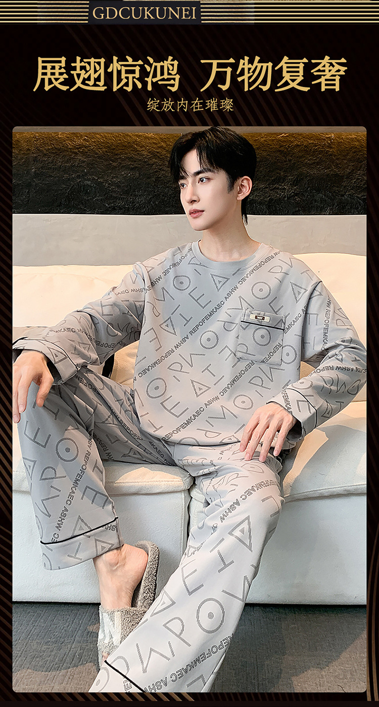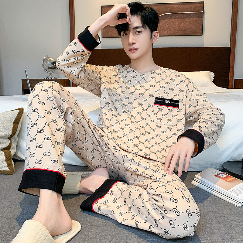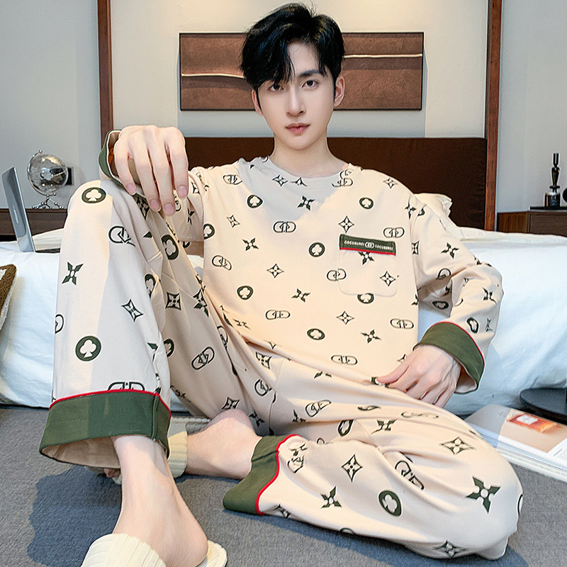 원피스 배달 가을 남자 100% 면 잠옷 긴팔 풀오버 남자 한국식 홈웨어 세트스토어 가기