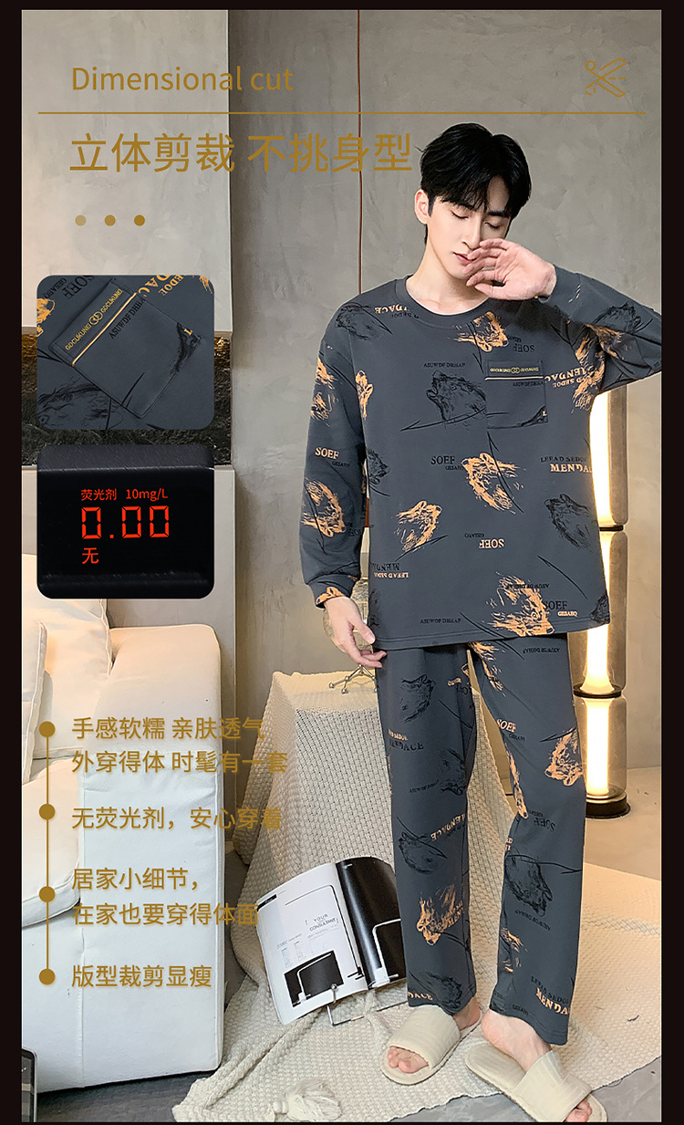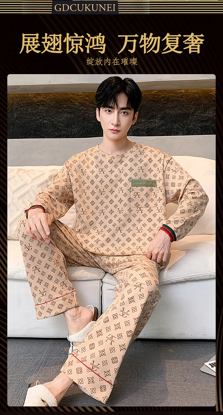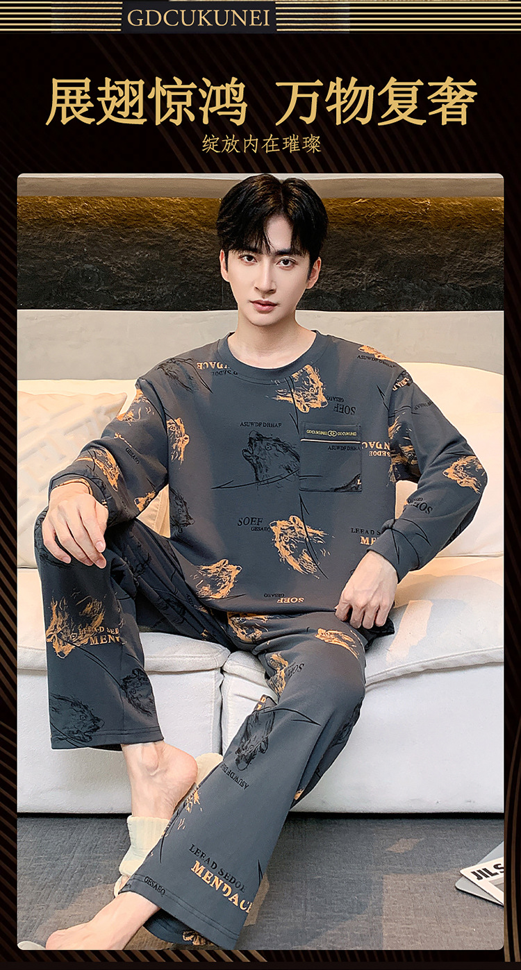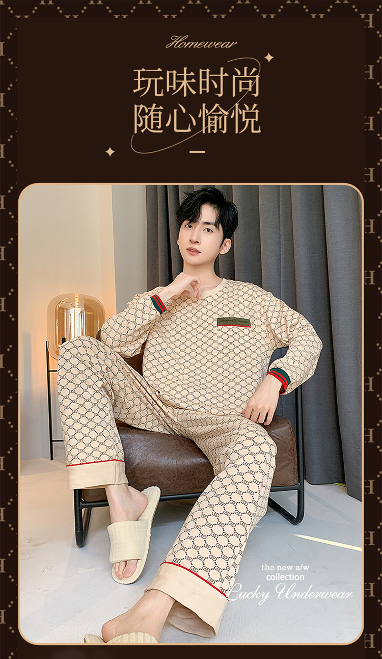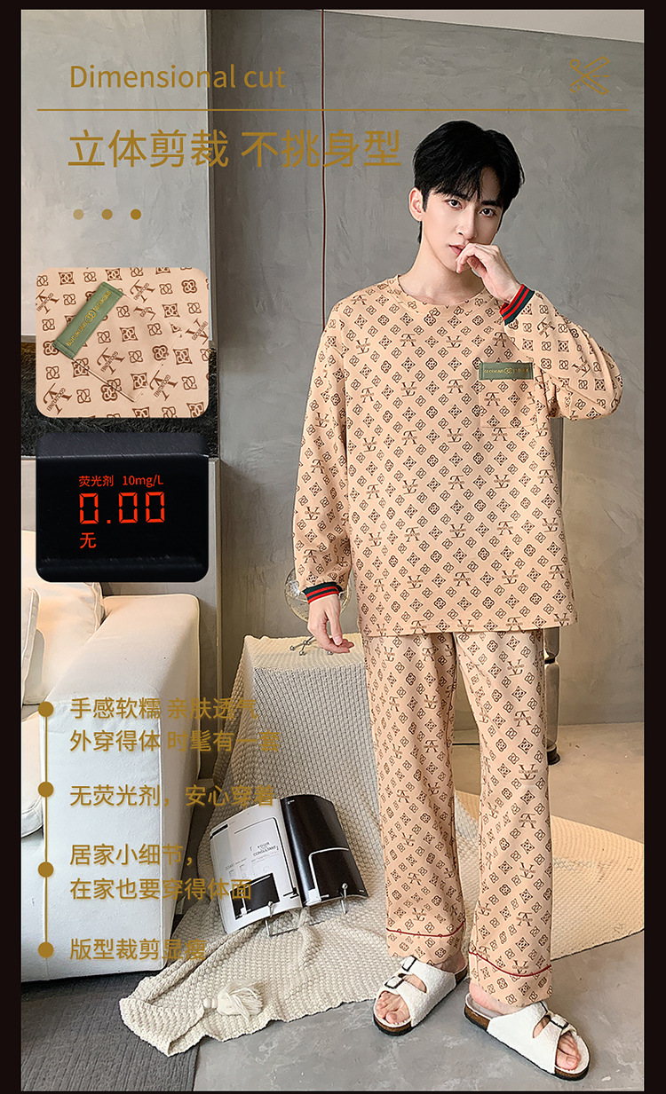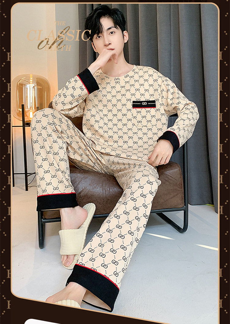 원피스 배달 가을 남자 100% 면 잠옷 긴팔 풀오버 남자 한국식 홈웨어 세트스토어 가기