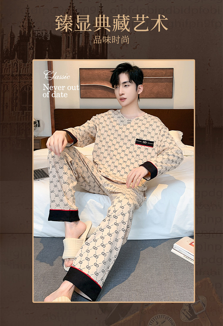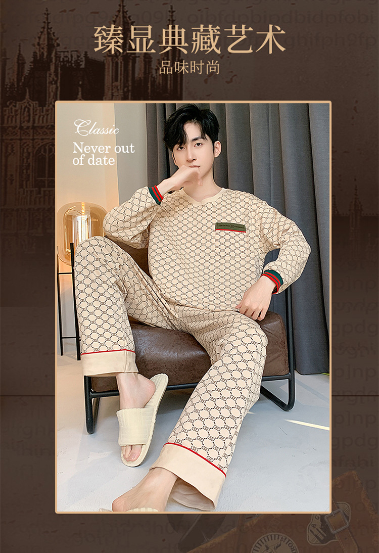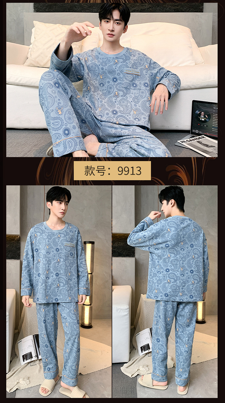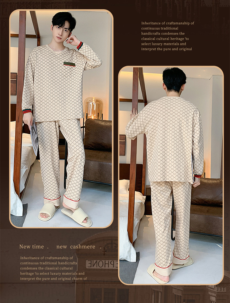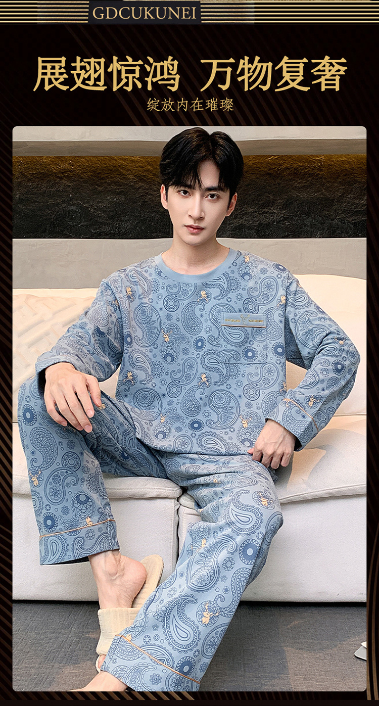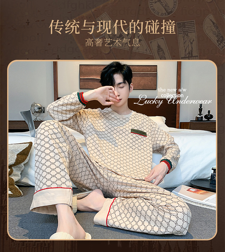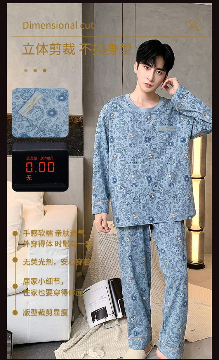 원피스 배달 가을 남자 100% 면 잠옷 긴팔 풀오버 남자 한국식 홈웨어 세트스토어 가기