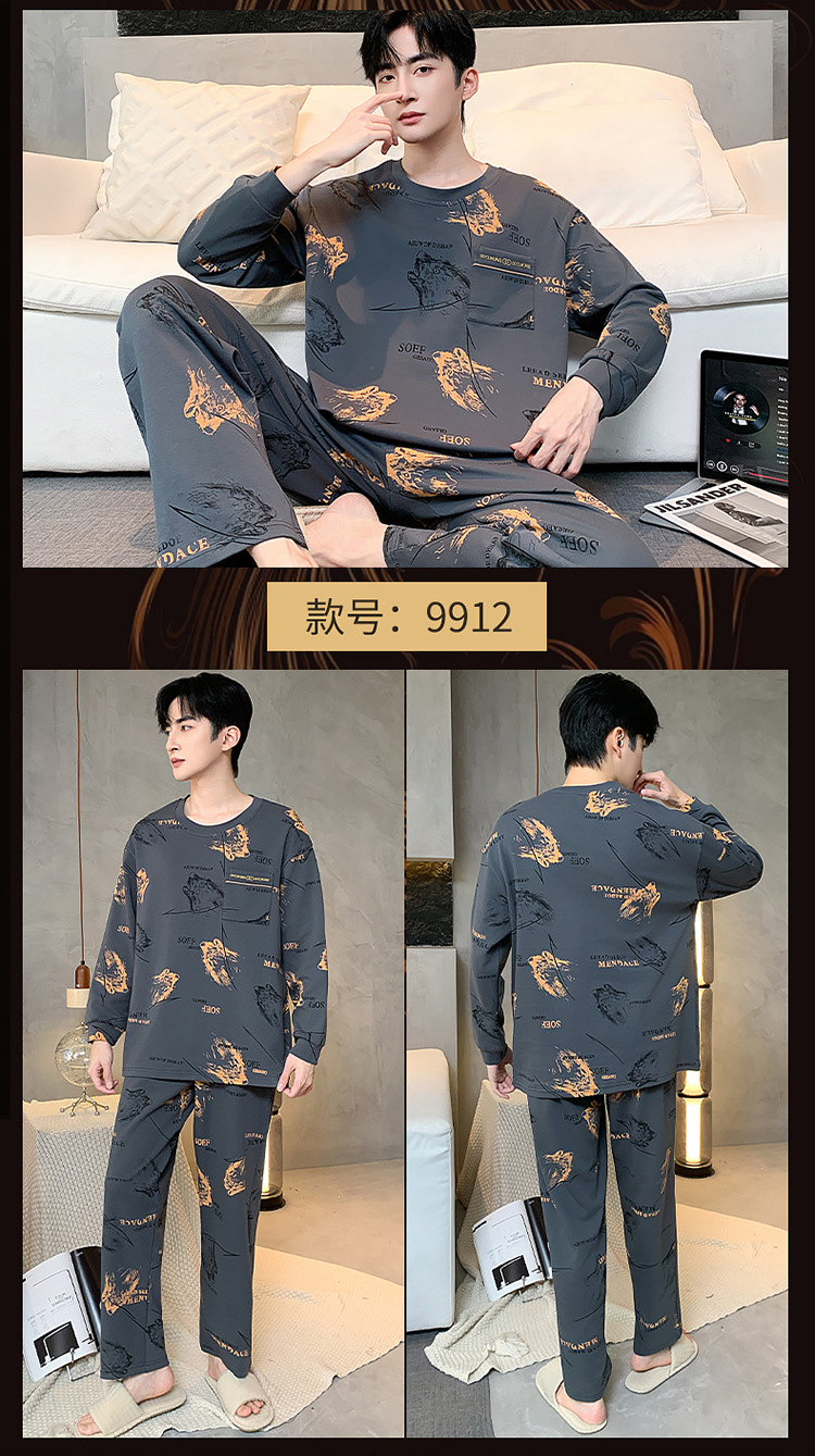 원피스 배달 가을 남자 100% 면 잠옷 긴팔 풀오버 남자 한국식 홈웨어 세트