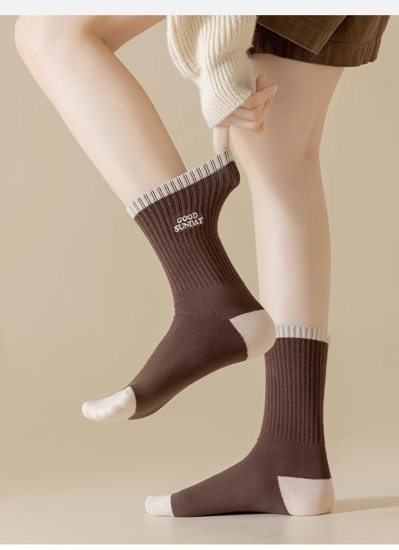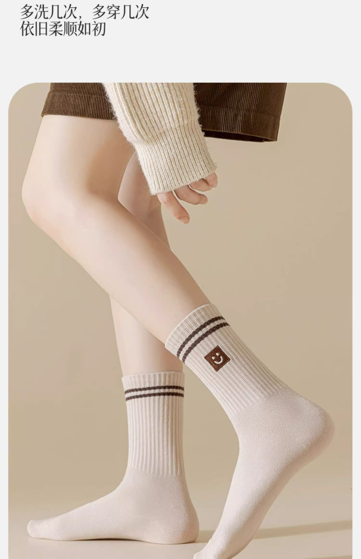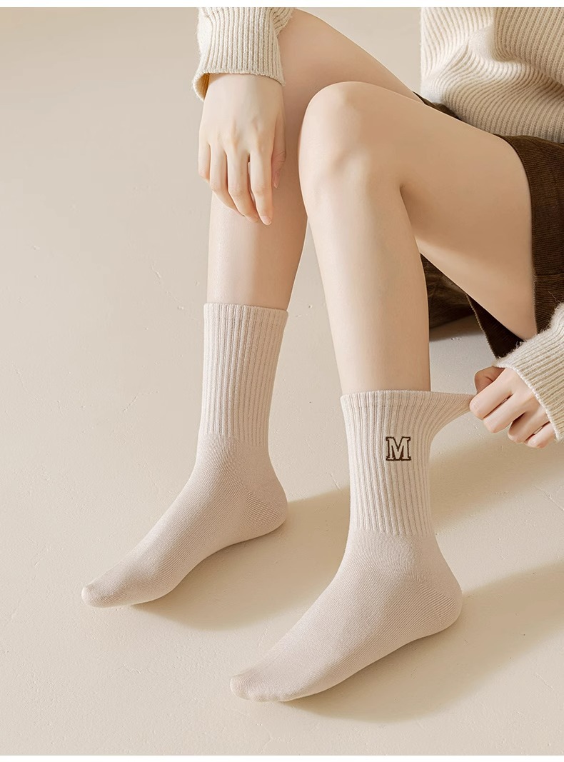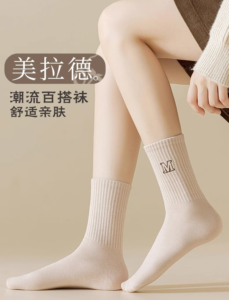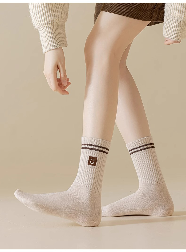 Zhuji 양말 여성의 가을과 겨울 중반 종아리 길이 양말 단색 두꺼운 Maillard 줄무늬 더미 양말 뼈없는 겨울 스타킹스토어 가기