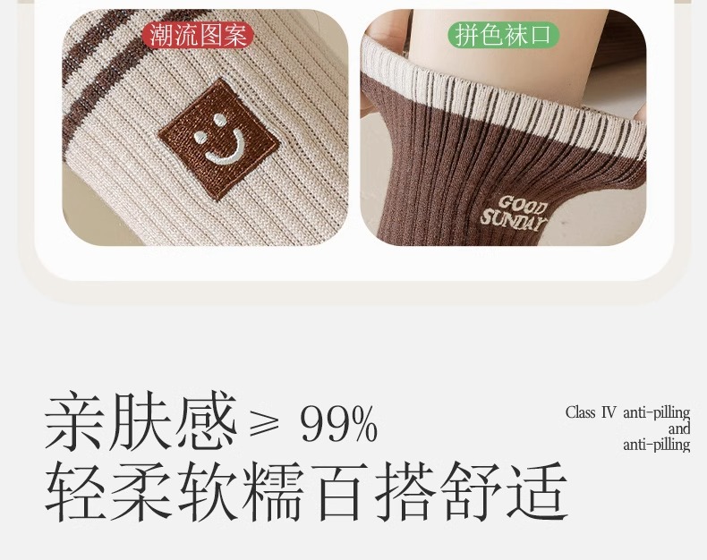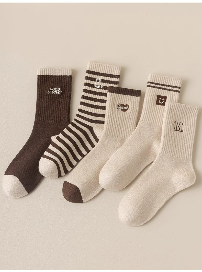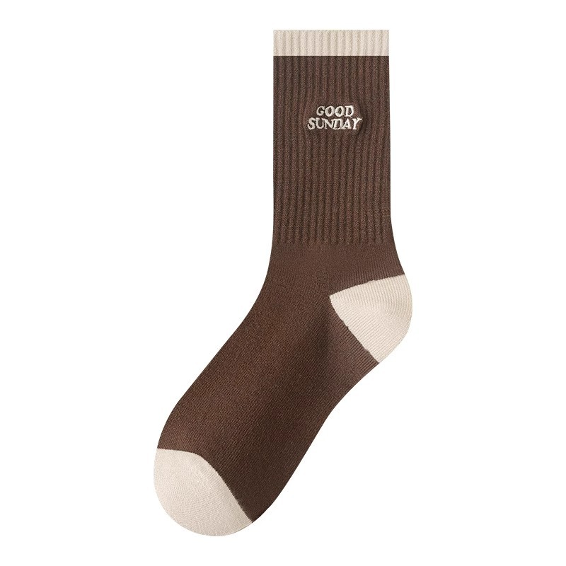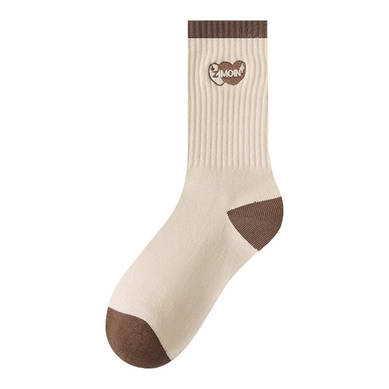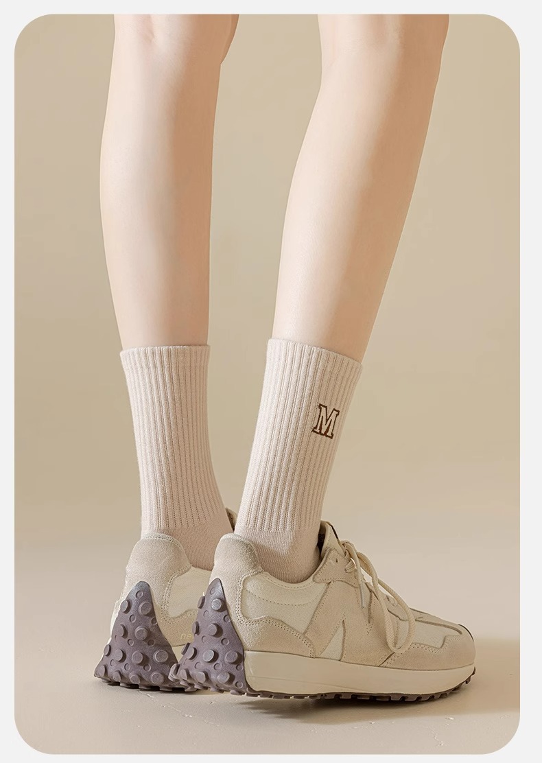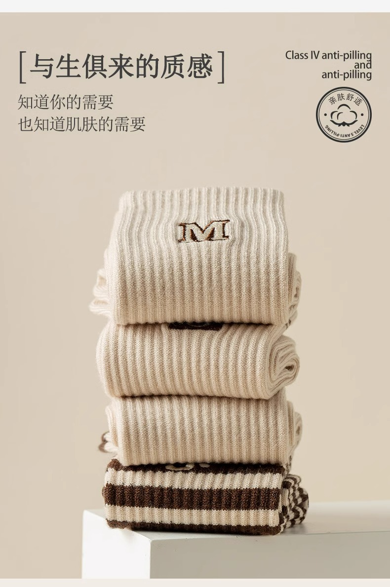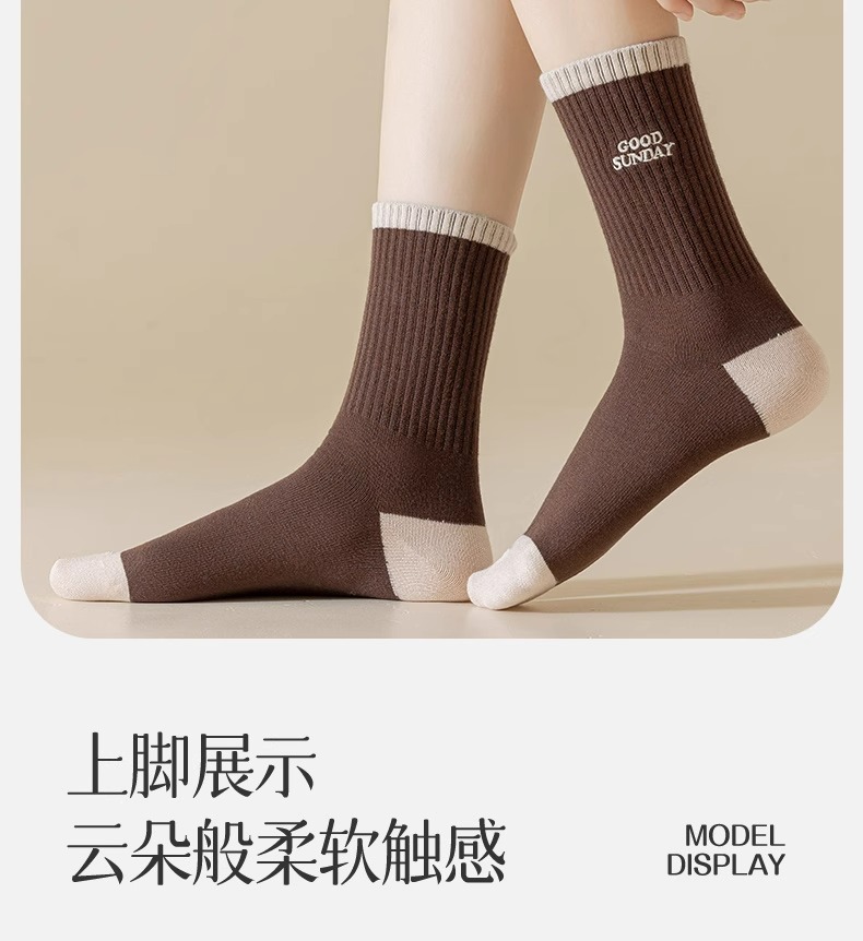 Zhuji 양말 여성의 가을과 겨울 중반 종아리 길이 양말 단색 두꺼운 Maillard 줄무늬 더미 양말 뼈없는 겨울 스타킹스토어 가기