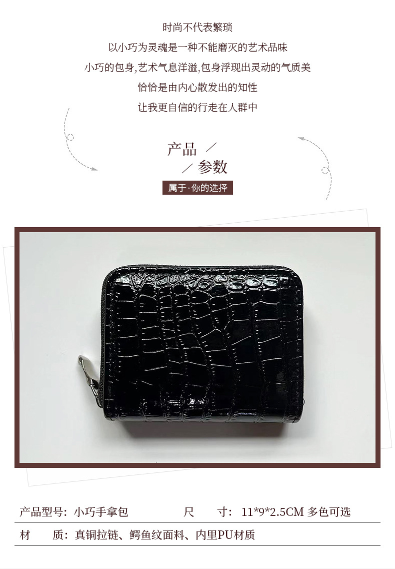 장기 카드 홀더 악어 패턴 지갑 실제 구리 지퍼 대용량 하이 엔드 도난 방지 통합 인증서 동전 지갑