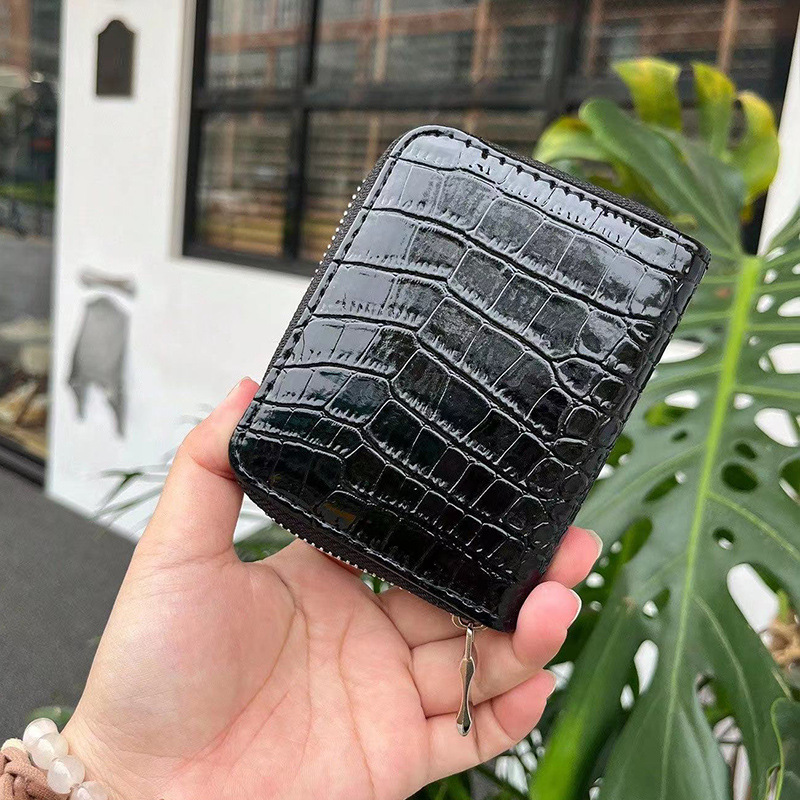 장기 카드 홀더 악어 패턴 지갑 실제 구리 지퍼 대용량 하이 엔드 도난 방지 통합 인증서 동전 지갑스토어 가기