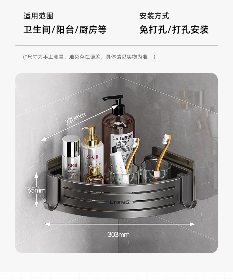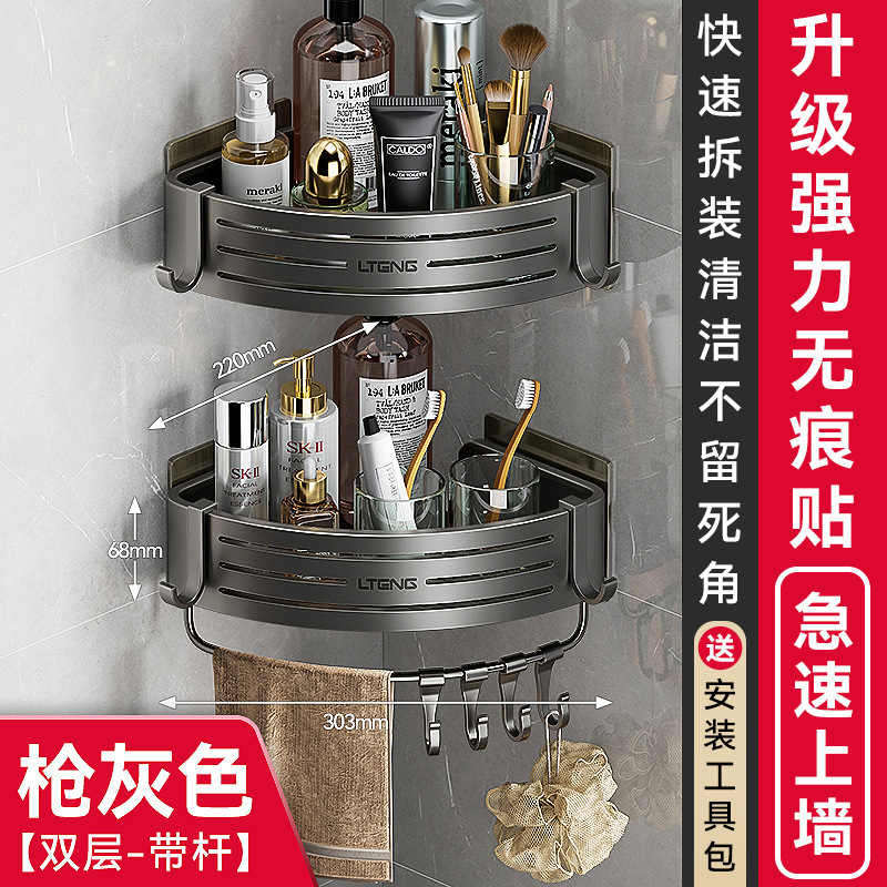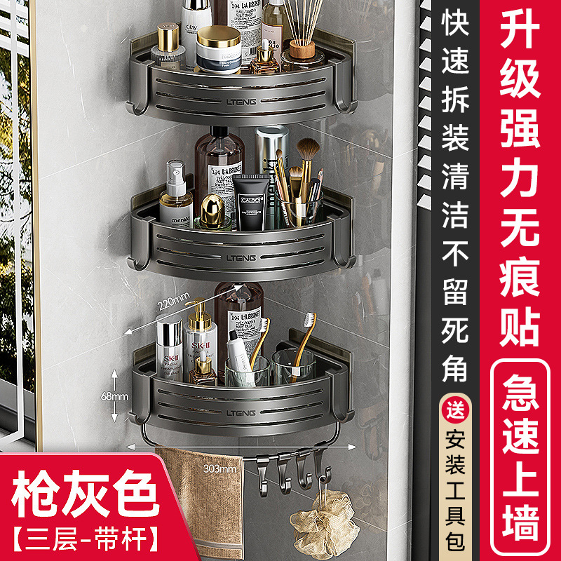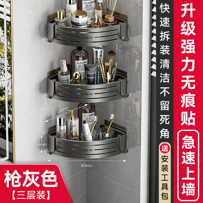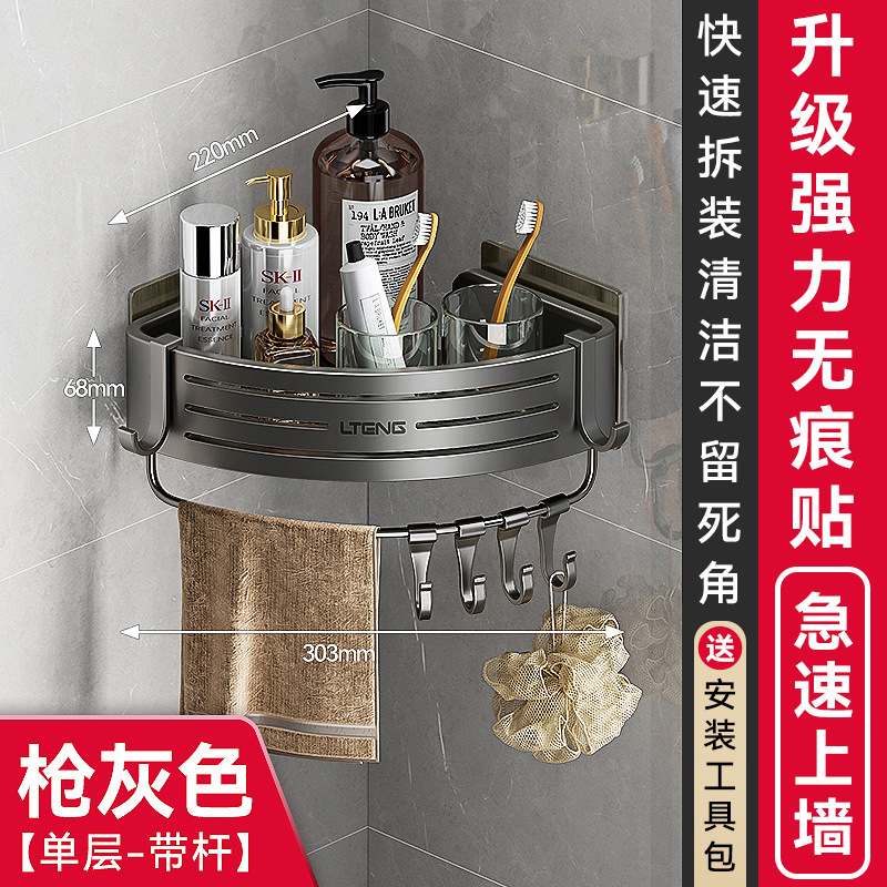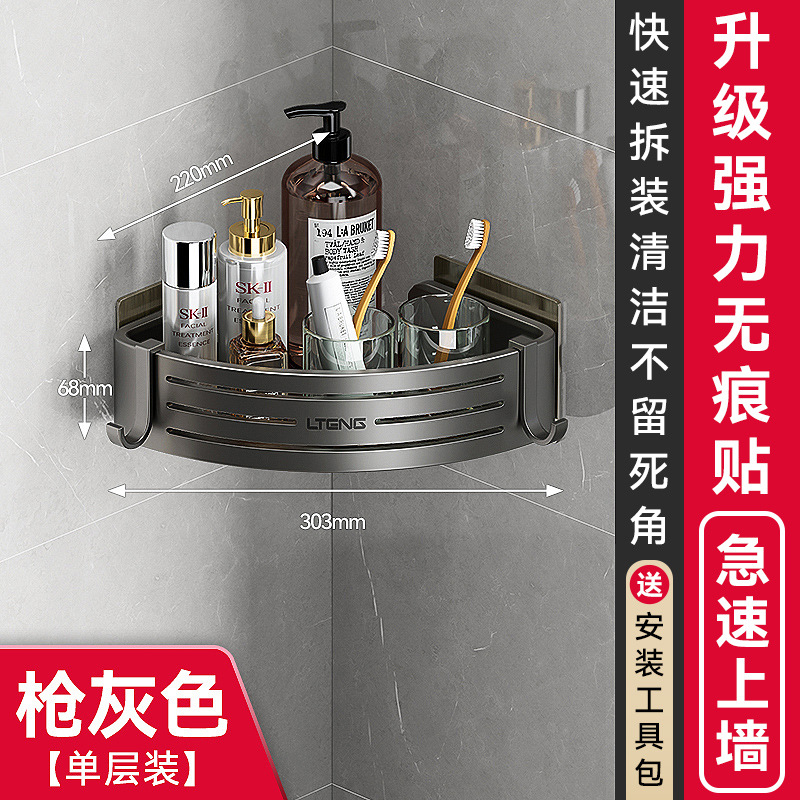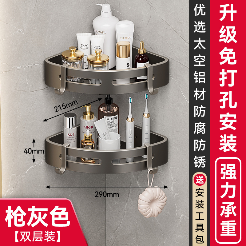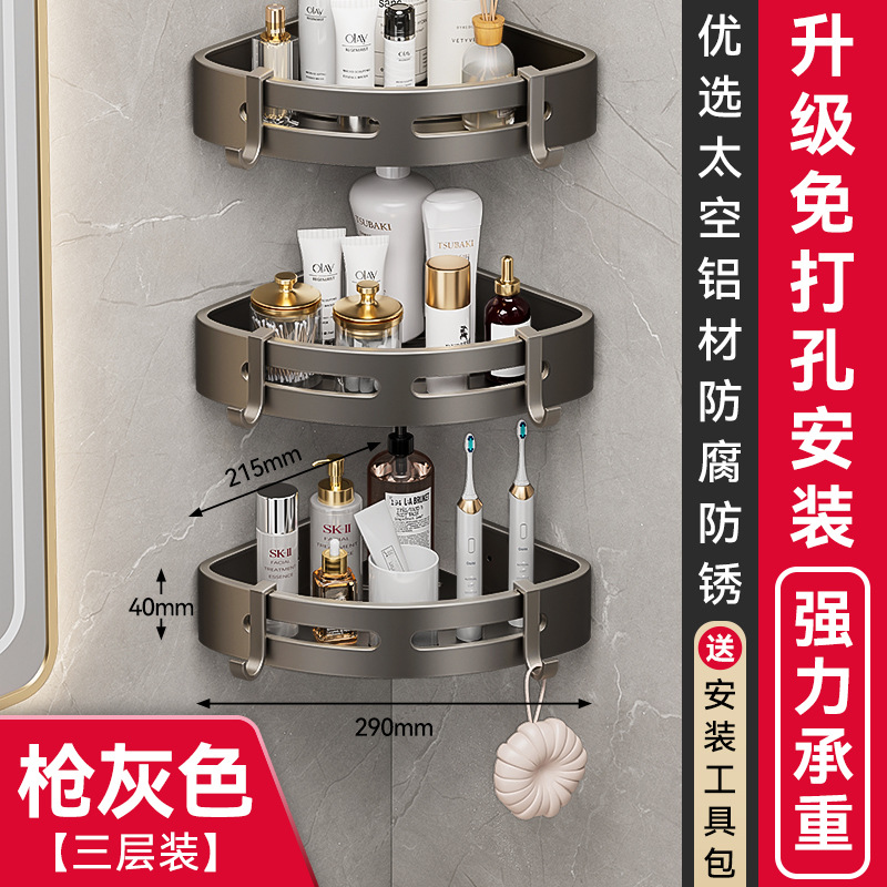 건메탈 욕실 수납 선반 스페이스 알루미늄 화장실 삼각 바구니 벽걸이 수납 선반 무타공 설치