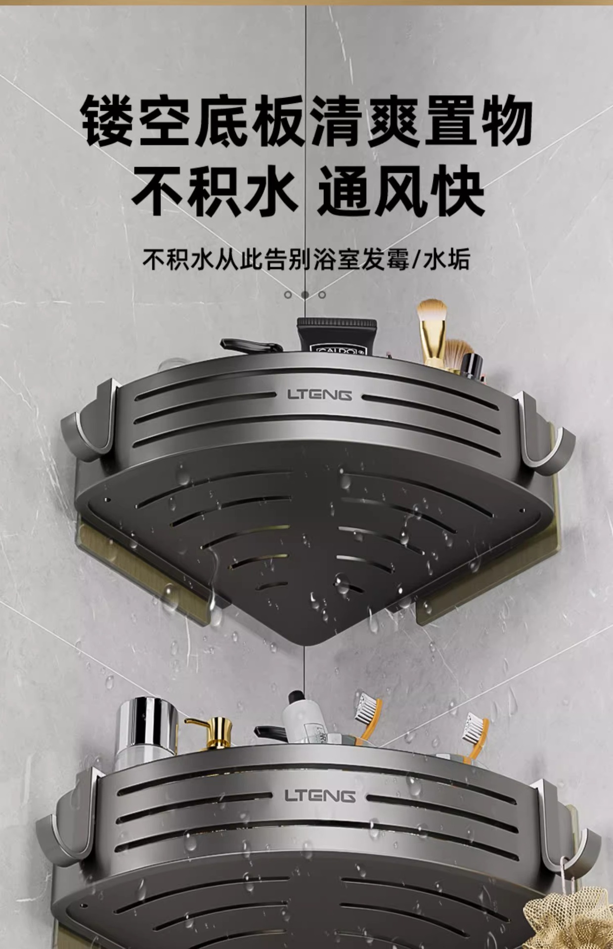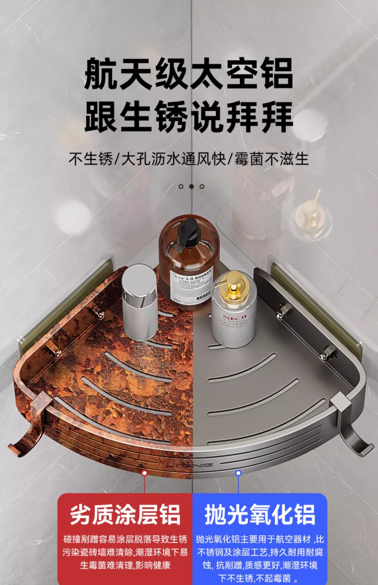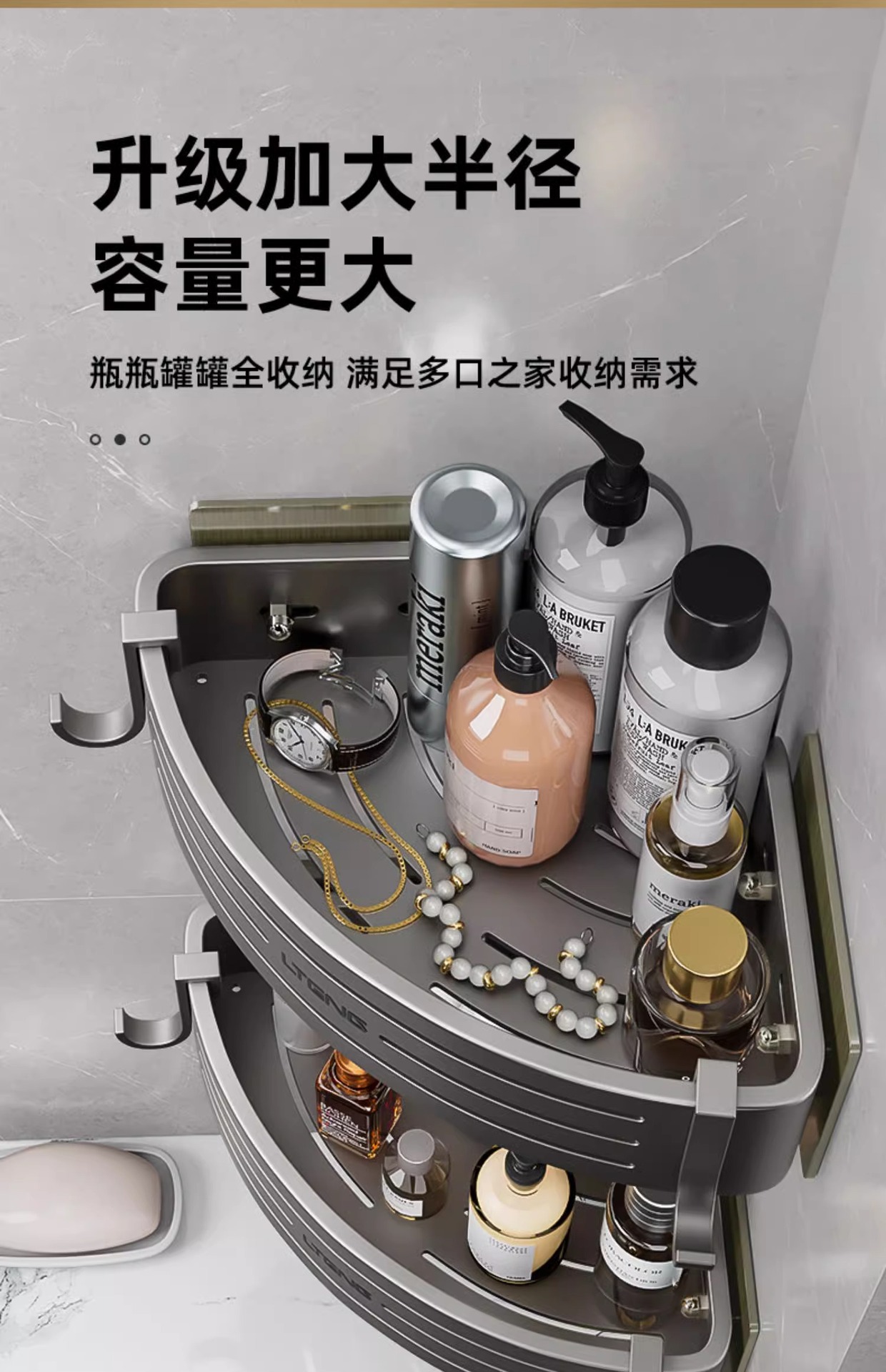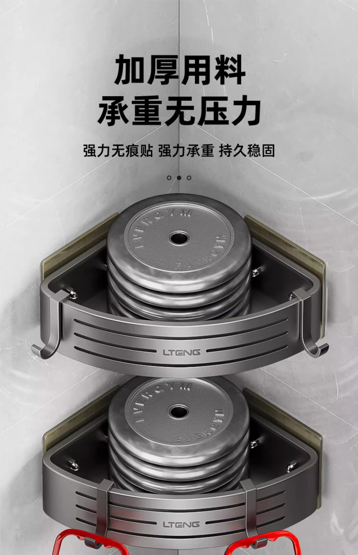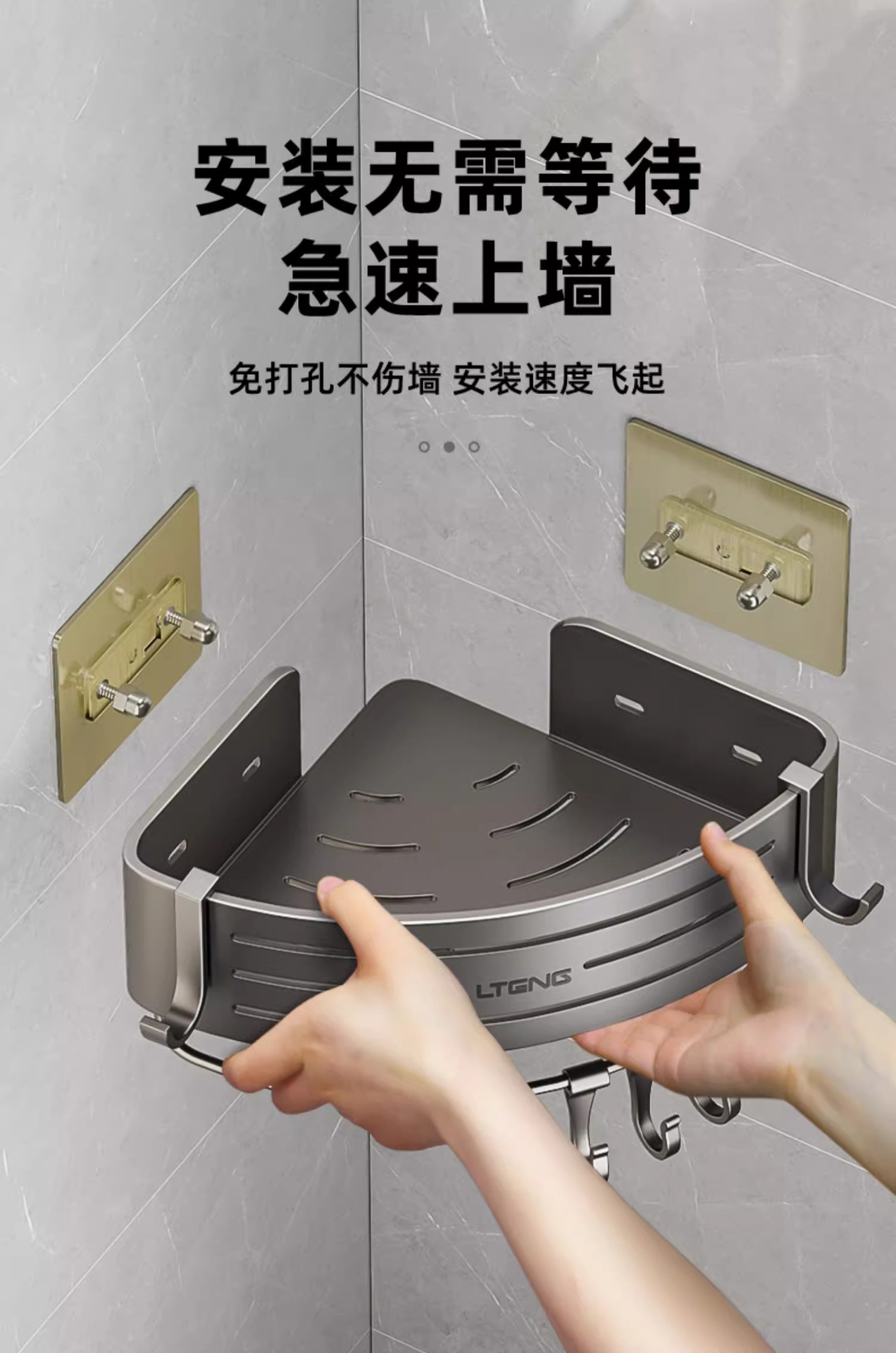 건메탈 욕실 수납 선반 스페이스 알루미늄 화장실 삼각 바구니 벽걸이 수납 선반 무타공 설치