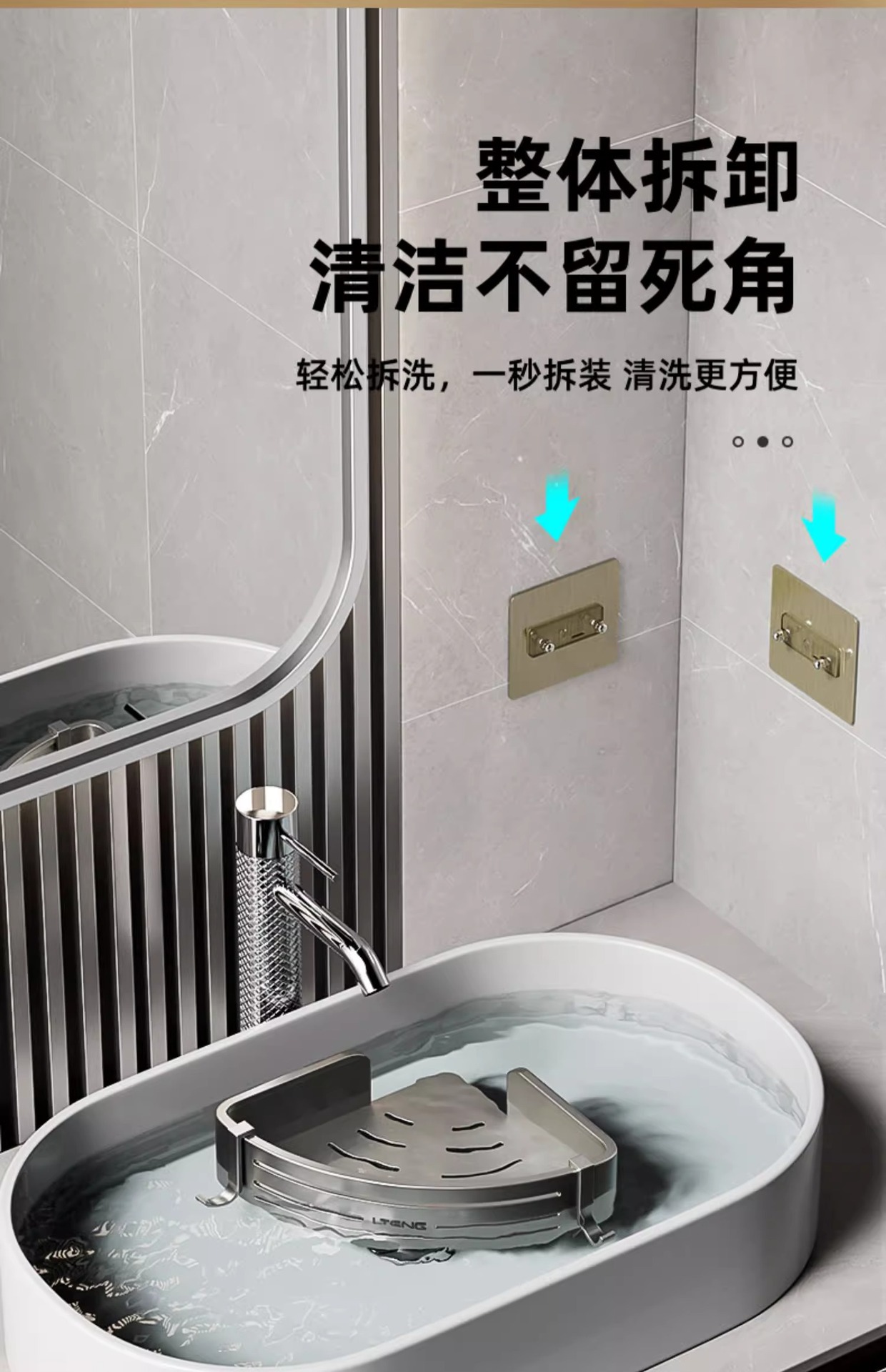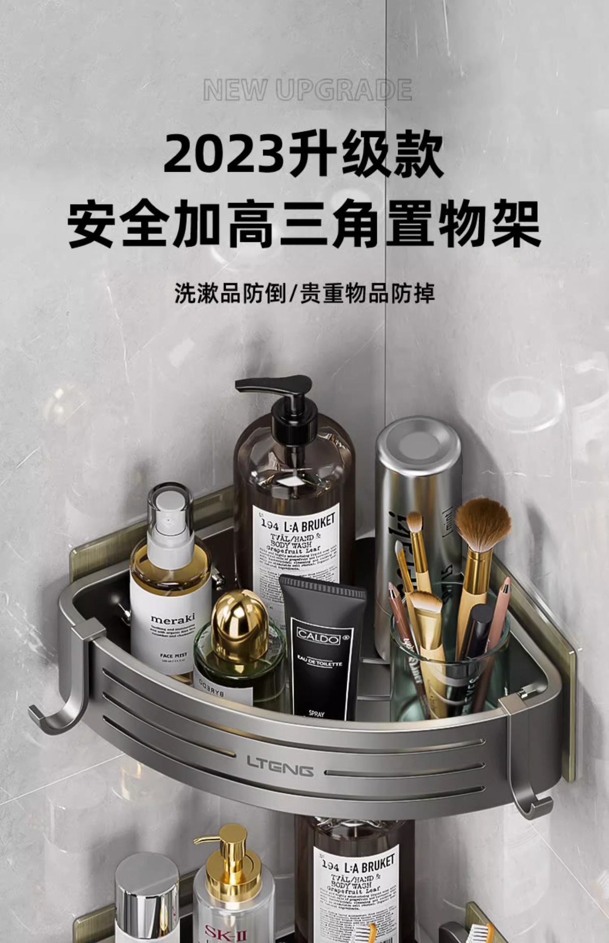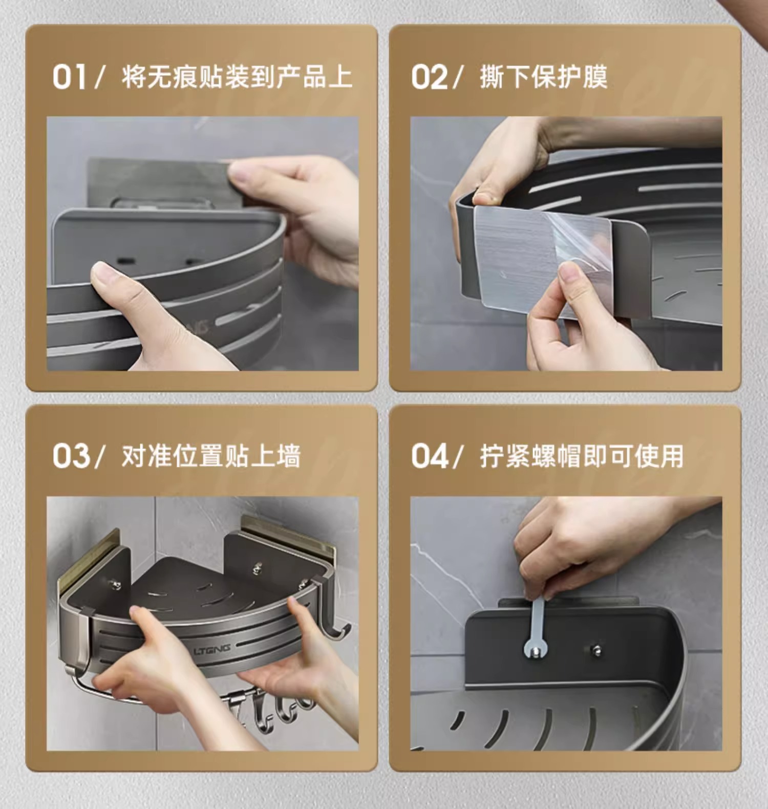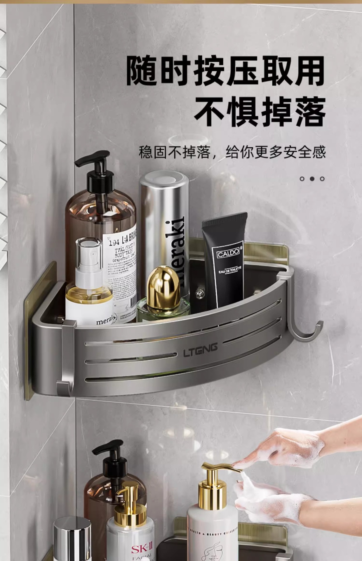 건메탈 욕실 수납 선반 스페이스 알루미늄 화장실 삼각 바구니 벽걸이 수납 선반 무타공 설치