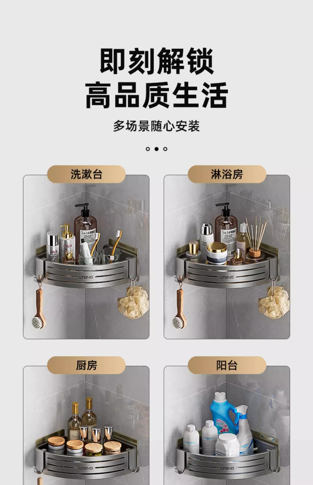 건메탈 욕실 수납 선반 스페이스 알루미늄 화장실 삼각 바구니 벽걸이 수납 선반 무타공 설치스토어 가기