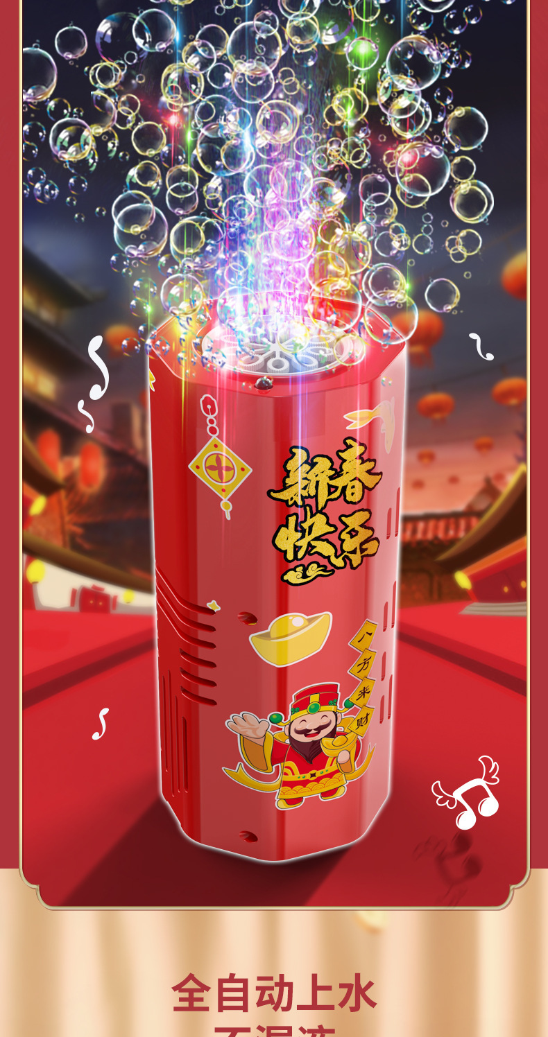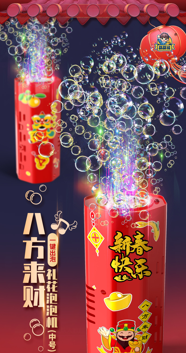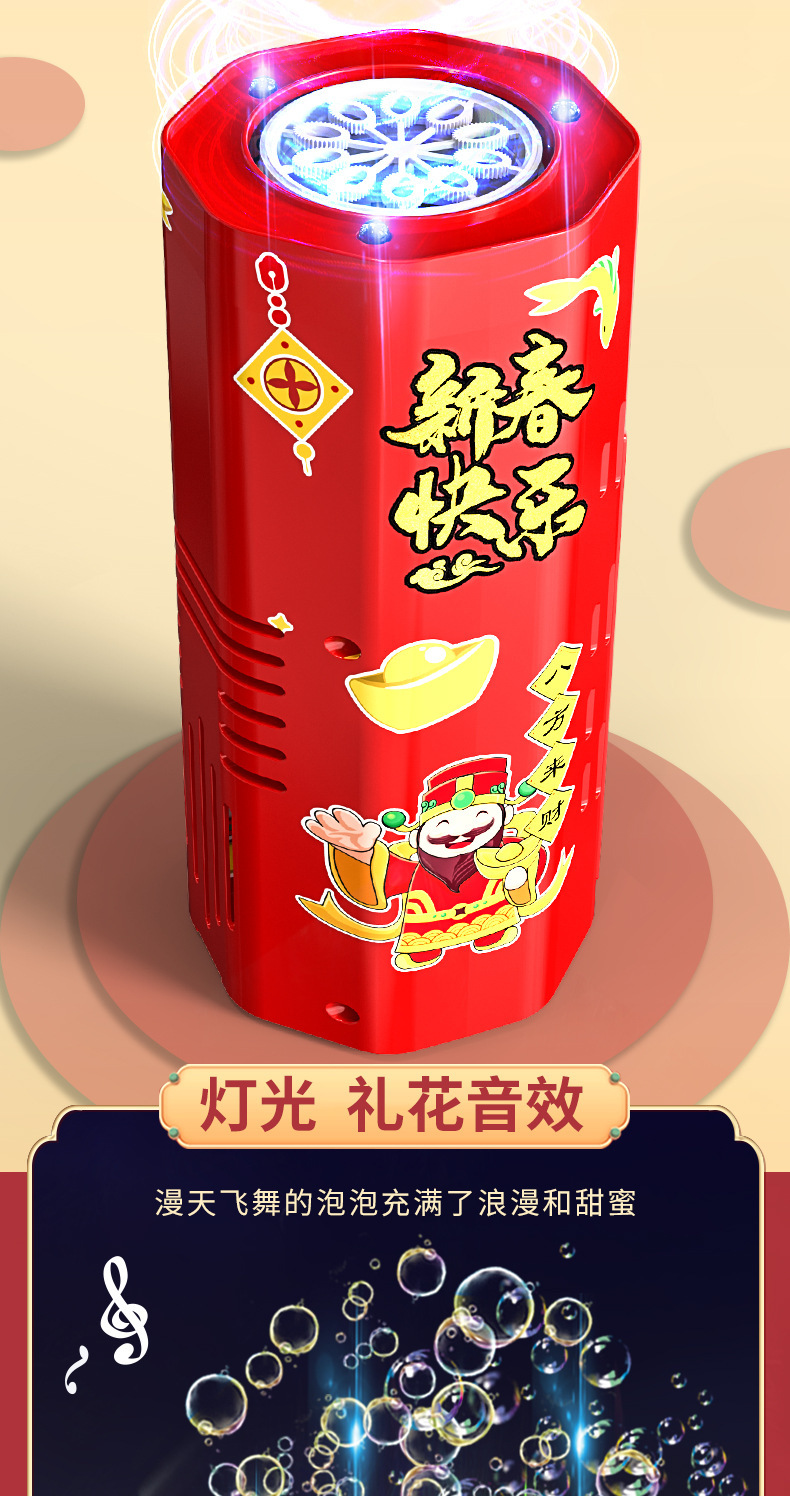 불꽃 놀이 거품 기계 남성과 여성의 새해 선물 전자 폭죽 로켓 배럴 시뮬레이션 음향 효과 다채로운 조명 전기 장난감스토어 가기