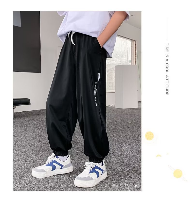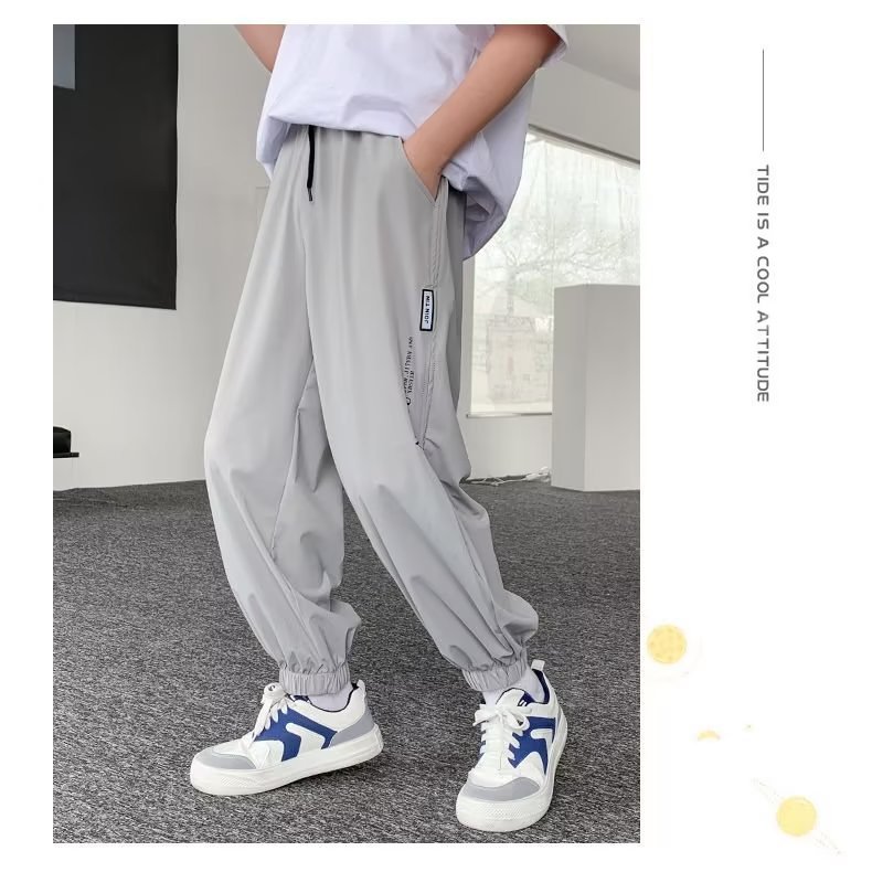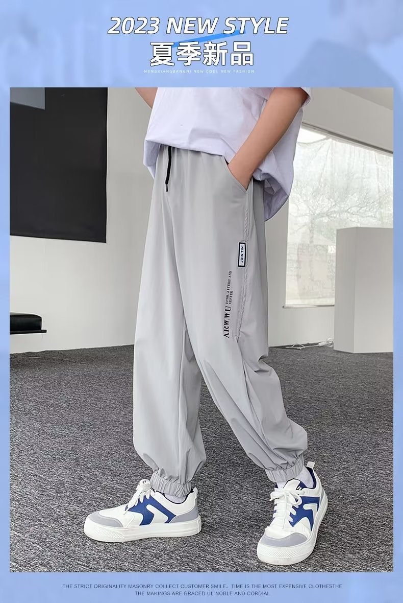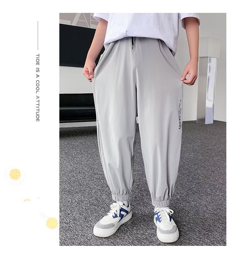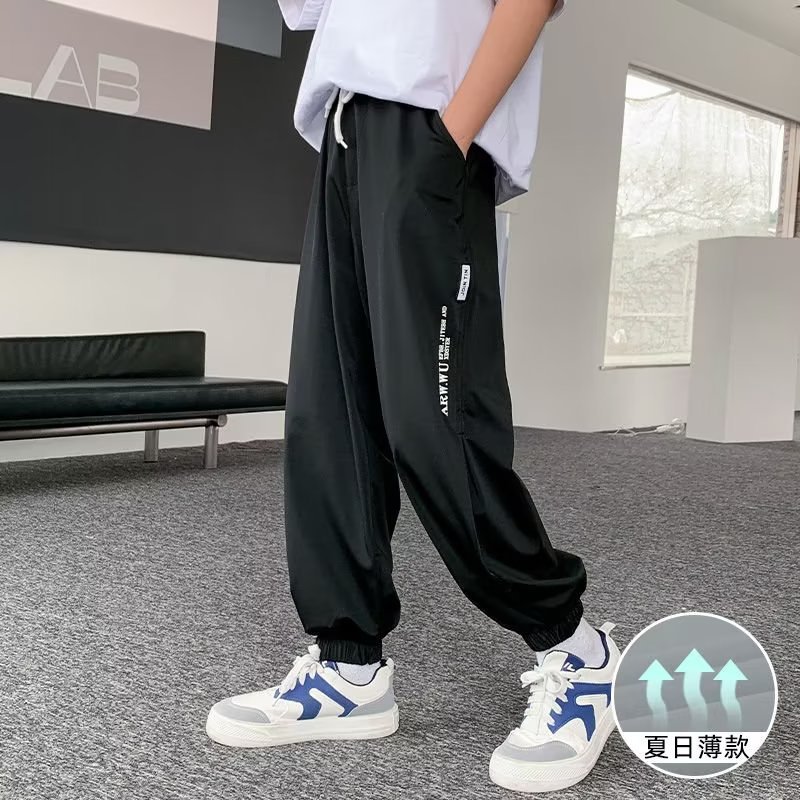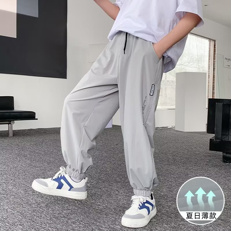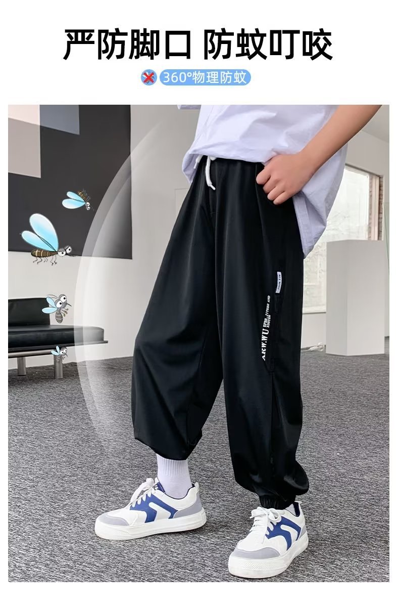 남아용 얇은 바지, 중대형 아동용 루즈 캐주얼 모기 방지 바지 2024 신상 아동 여름 의류 아이스 실크 속건 바지스토어 가기