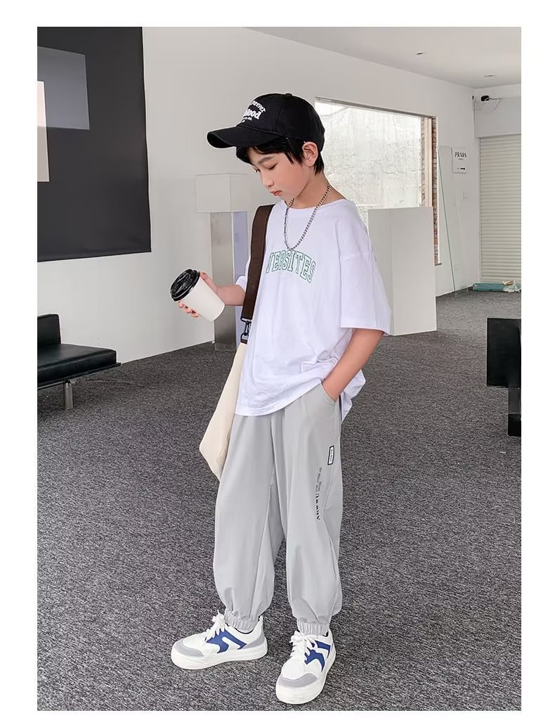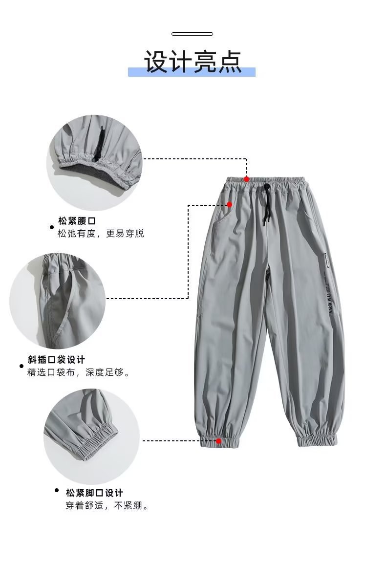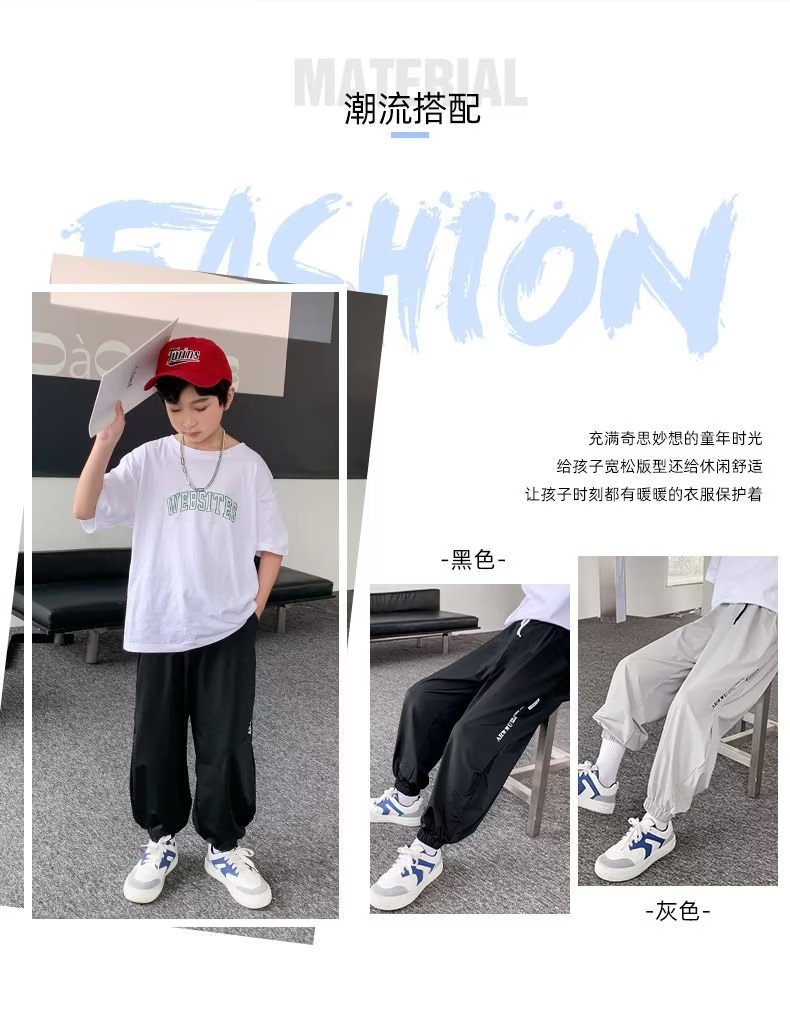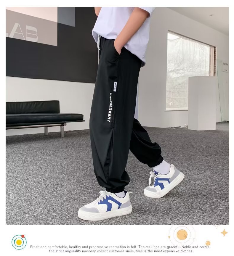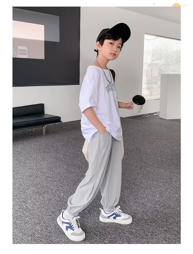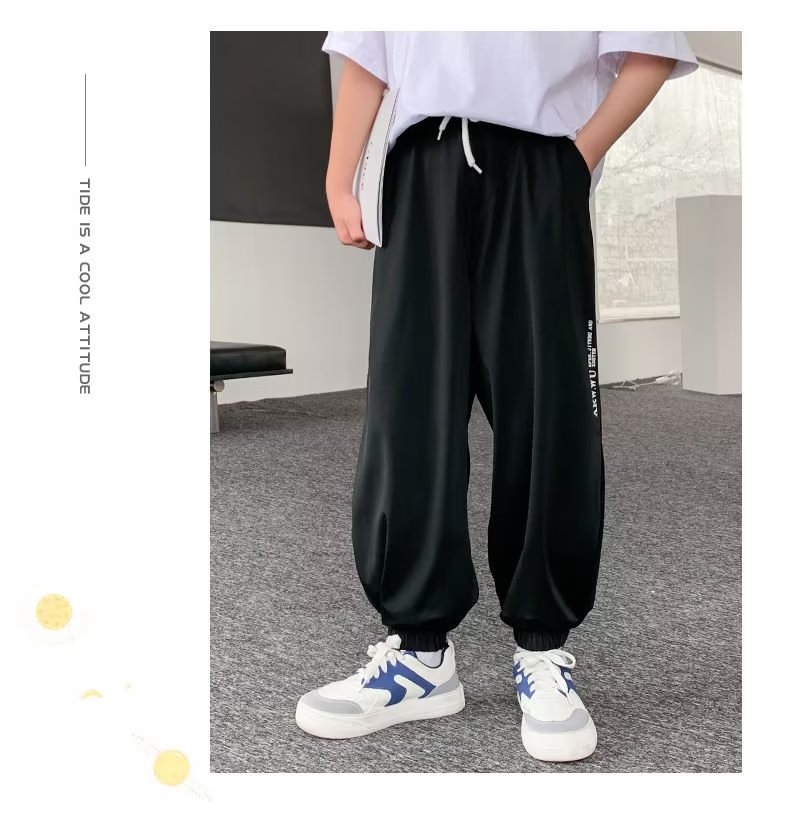 남아용 얇은 바지, 중대형 아동용 루즈 캐주얼 모기 방지 바지 2024 신상 아동 여름 의류 아이스 실크 속건 바지스토어 가기