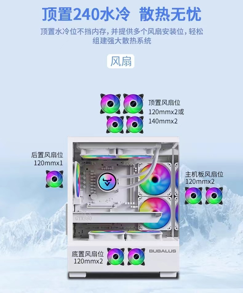 큰 버팔로 바다 전망 룸 케이스 컴퓨터 데스크톱 ATX 사이드 240 수냉식 게임 화이트 메인 룸 케이스 뷰 룸 머신스토어 가기