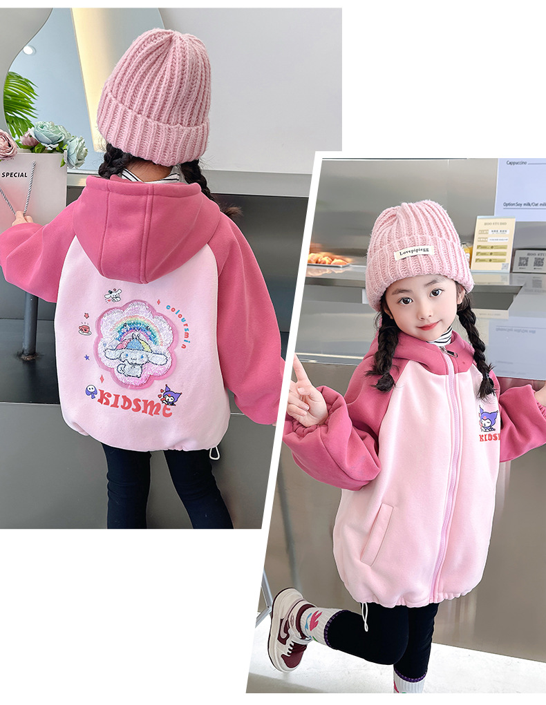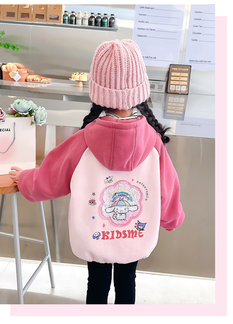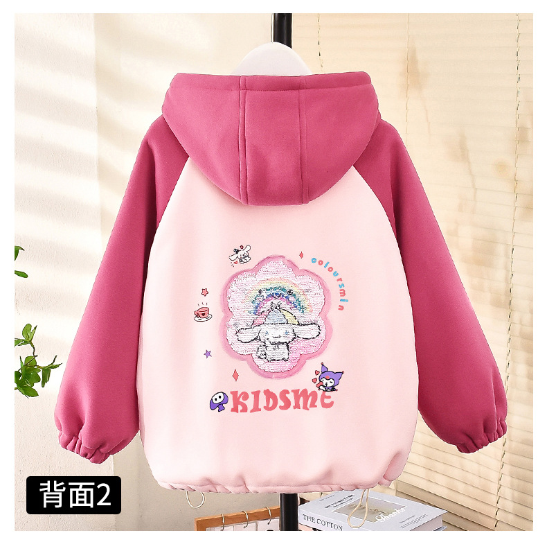 소녀 가을과 겨울 두꺼운 양털 자켓 카디건 지퍼 한국식 스팽글 만화 따뜻한 유치원 어린이 중년