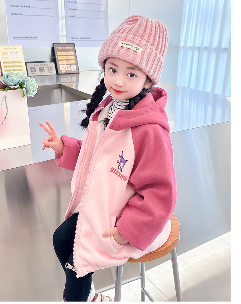 소녀 가을과 겨울 두꺼운 양털 자켓 카디건 지퍼 한국식 스팽글 만화 따뜻한 유치원 어린이 중년스토어 가기