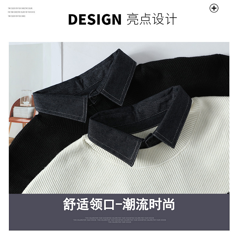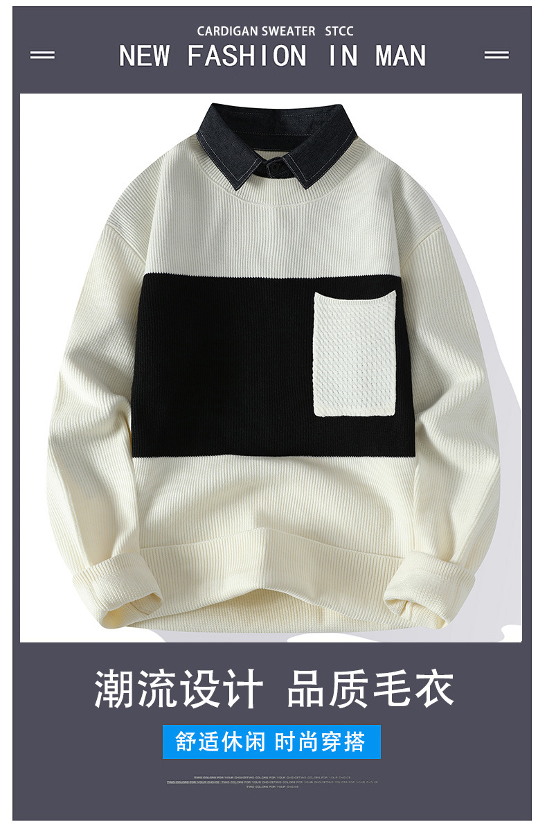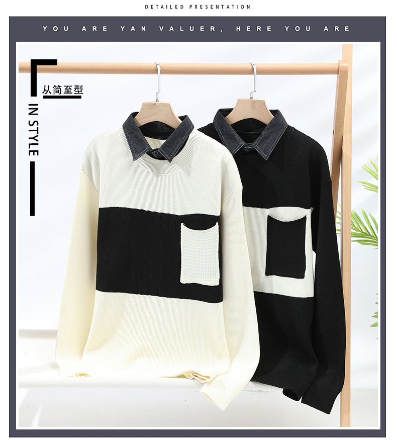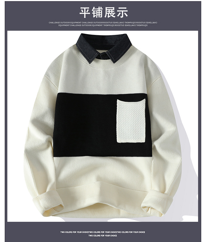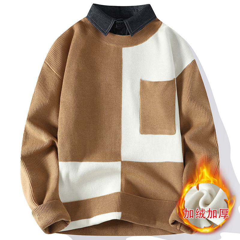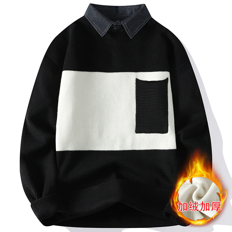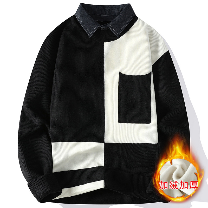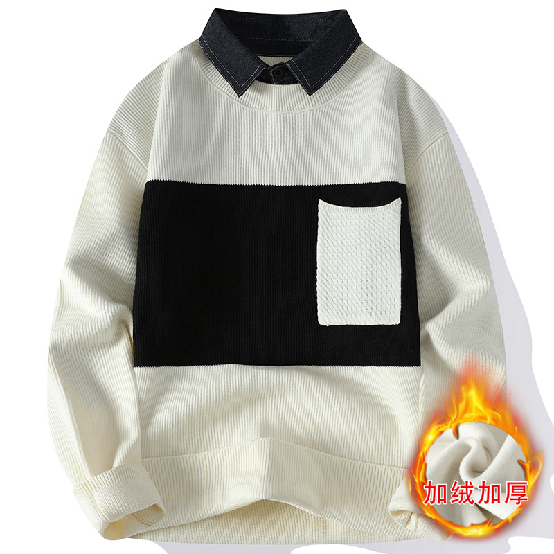 가짜 투피스 스웨터 남성용 겨울 기모 두꺼운 따뜻한 패션 브랜드 셔츠 칼라 스웨터 남성용 느슨한 바닥 셔츠 스웨터스토어 가기