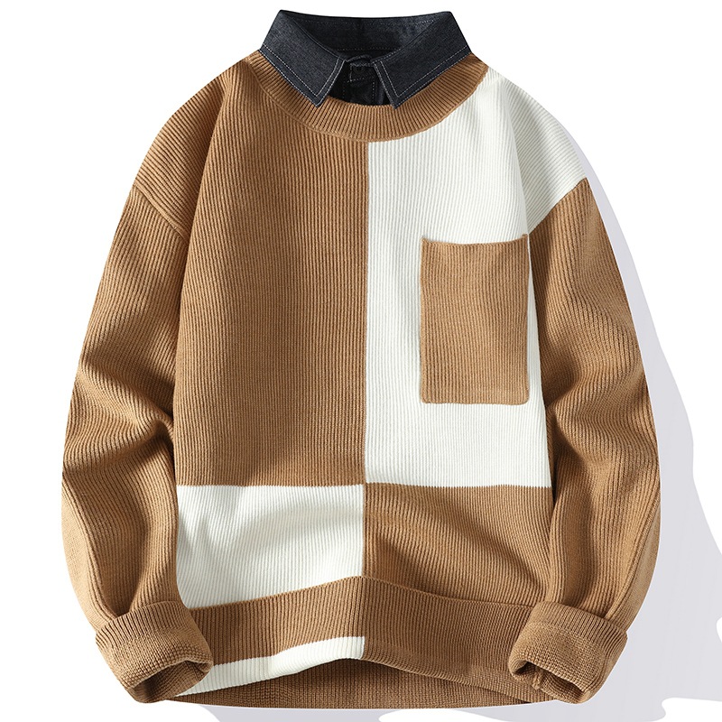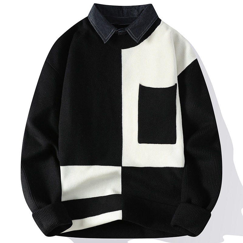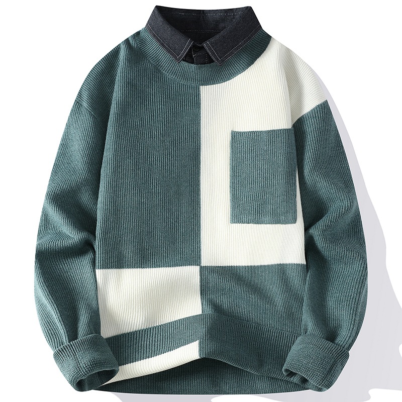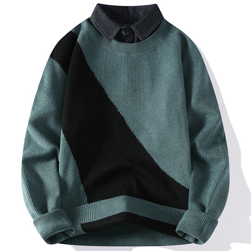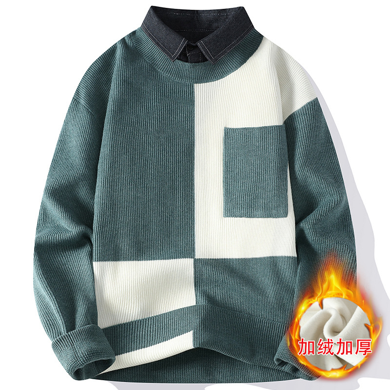 가짜 투피스 스웨터 남성용 겨울 기모 두꺼운 따뜻한 패션 브랜드 셔츠 칼라 스웨터 남성용 느슨한 바닥 셔츠 스웨터