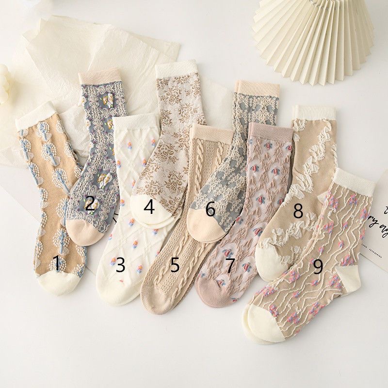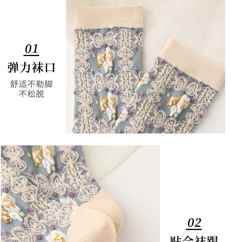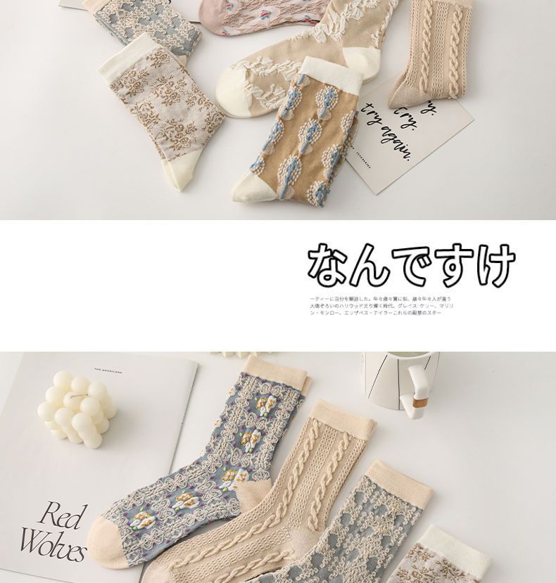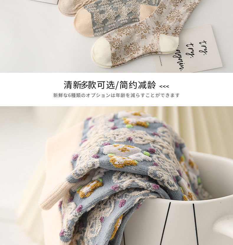 여성 긴 양말 봄과 가을, 유행 귀여운 다재다능한 한국 스타일 일본 복고풍 예술적 3 차원 중간 종아리 길이 양말 학생들을위한스토어 가기